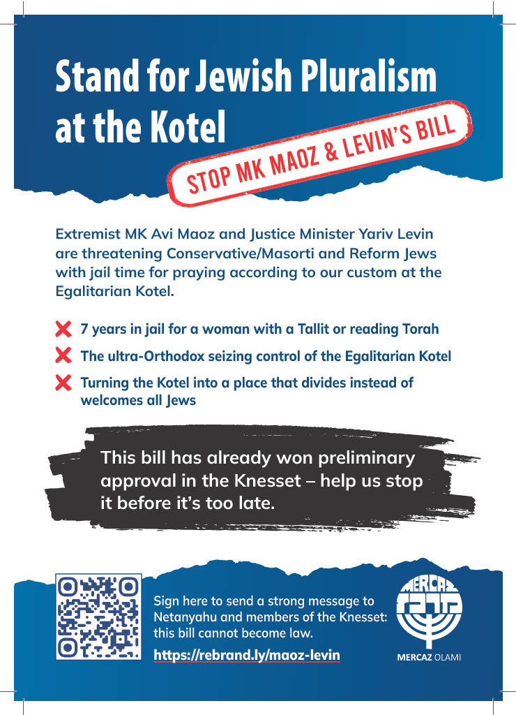 This puts into jeopardy all non-Orthodox prayer and services that have taken place for the last 10 years. The Knesset voted in favor of a first draft of the law which would forbid egalitarian prayer in this area.