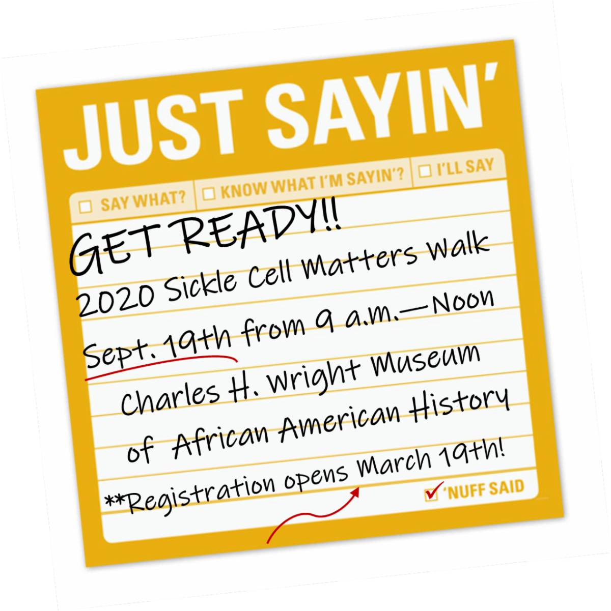 2020 SICKLE CELL MATTERS WALK, SEPT. 19 AT THE WRIGHT