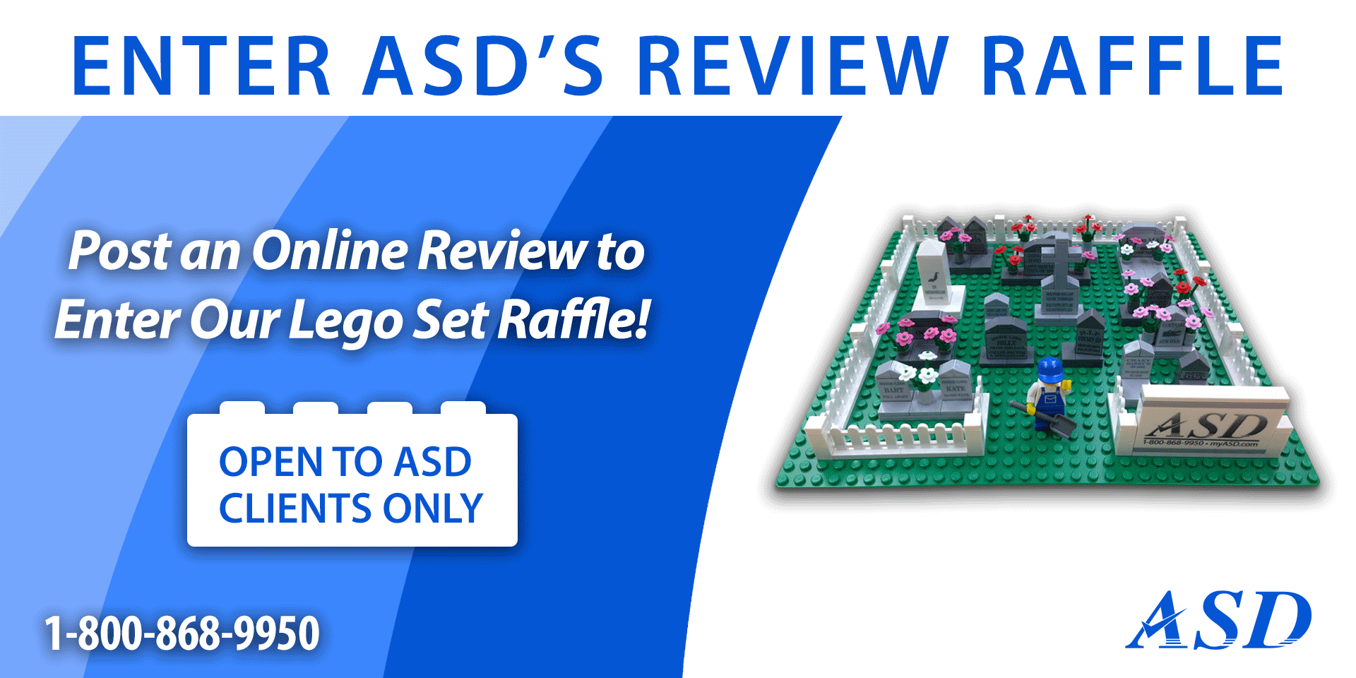 Any client who posts a review will automatically be entered into a raffle drawing for one of our exclusive funeral-themed Lego sets. Be sure to include your name with your review to be added to our next raffle drawing.