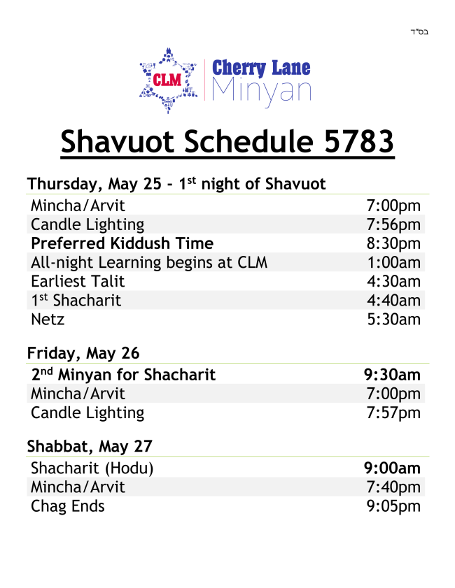 SHAVUOT ALL NIGHT LEARNING SCHEDULE
