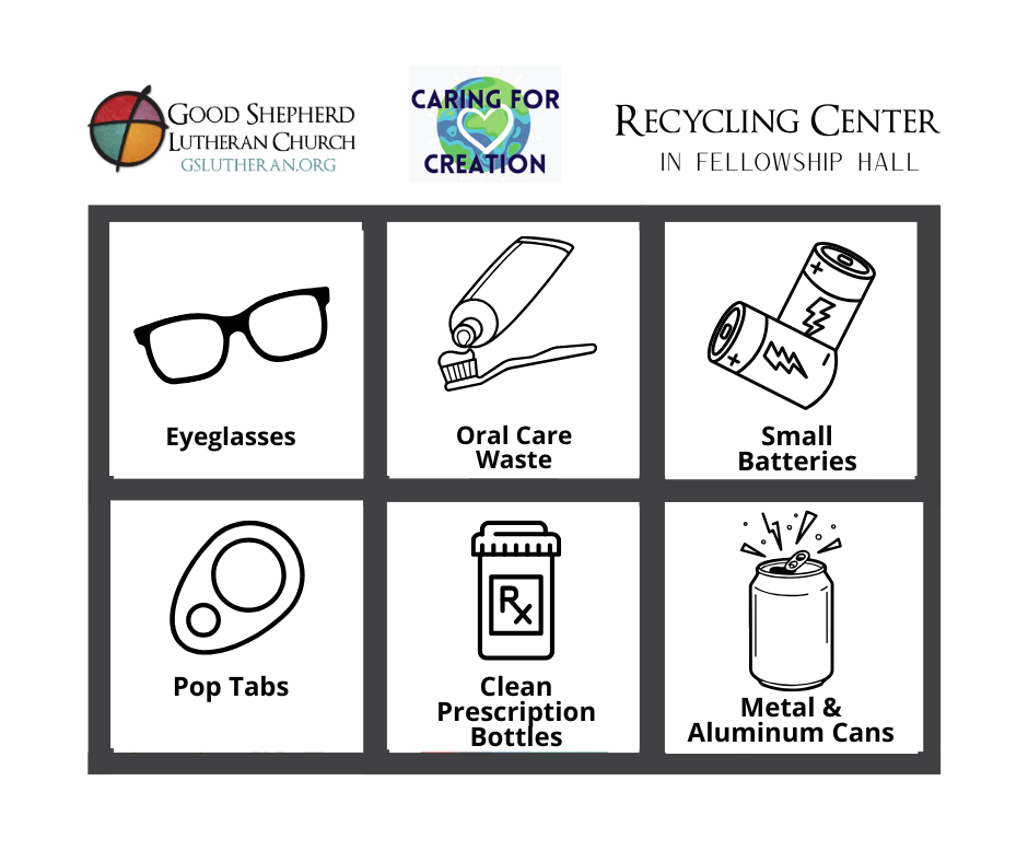 We continue our many recycling initiatives. We appreciate all the help from congregation members to keep these items out of landfills.