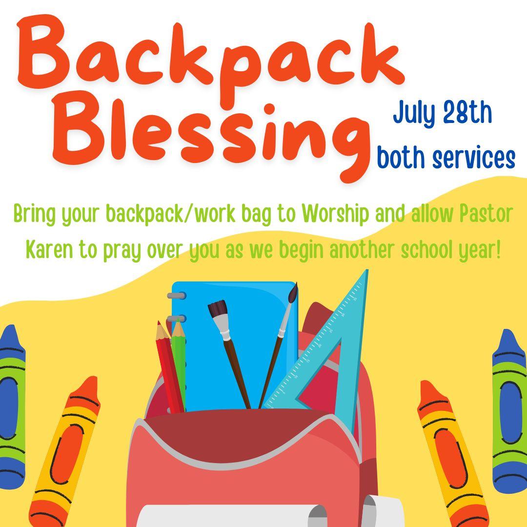 Bring your backpack/work bag to worship this Sunday for a special blessing! | |