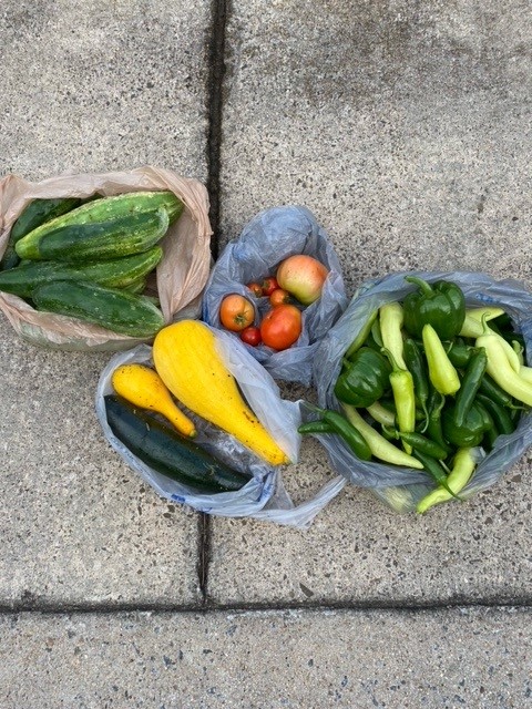 GARDEN OF GRACE:Peppers and cucumbers are exploding. Tomatoes are abundant and are beginning to ripen. Best harvest yet this season! Thanks be to God!