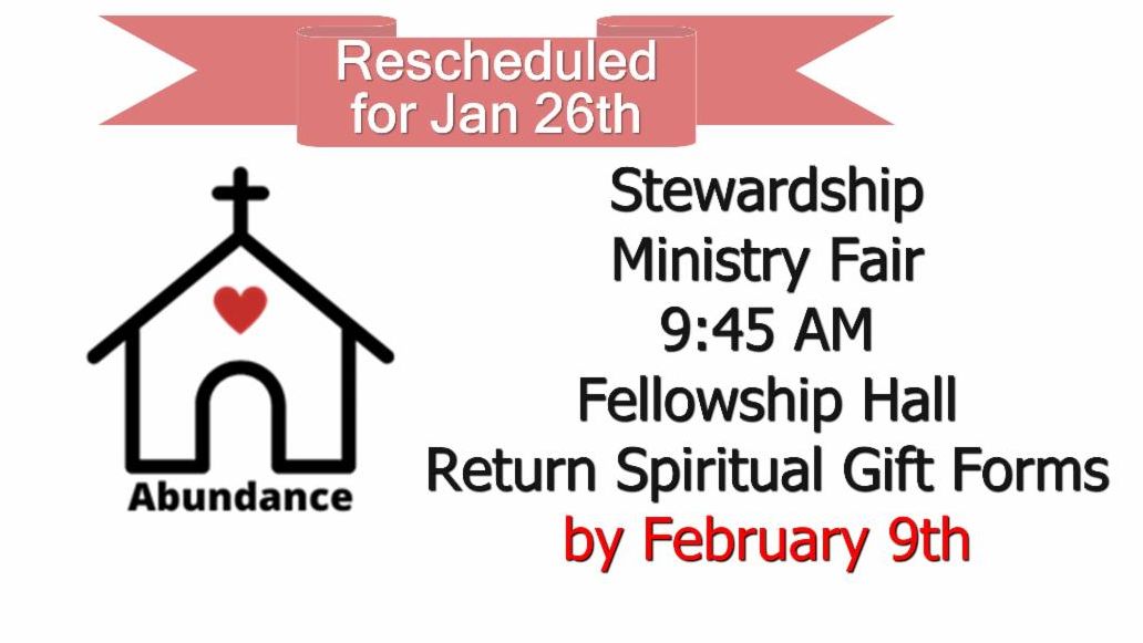 For the next few weeks, at sign up Central there are a couple copies of our “Sunday Servant Worship Assistant groups” as they are currently recorded in our database. Please take a moment to check your name and the worship servant roles that you are currently involved with. Write in any corrections on the sheet and initial if you have looked it over. If you are new to Sunday worship servant opportunities, the Stewardship Committee will distribute Spiritual Gift Forms at the Ministry Fair where you can mark your interests. This process will help the office staff to update our database with correct information.