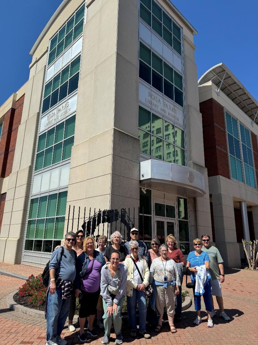 thirteen of our members took a road trip to Alabama to visit the Legacy Museum, Memorial, Sculpture Garden and Rosa Park Museum. With the little time we had, we were able to soak in the history of slavery in the South, while continuing the conversation of how we can be better. Our hearts and eyes were heavy by the days end!"