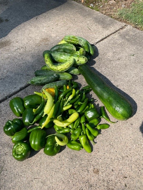 GARDEN OF GRACE: Our garden is now producing fresh vegetables abundantly. We are thankful that we now have squash, cucumbers and peppers. Tomatoes will be ready soon. Green beans and okra are blooming. All vegetables are donated to local food pantries for the food insecure right in our own community. Thanks be to God!