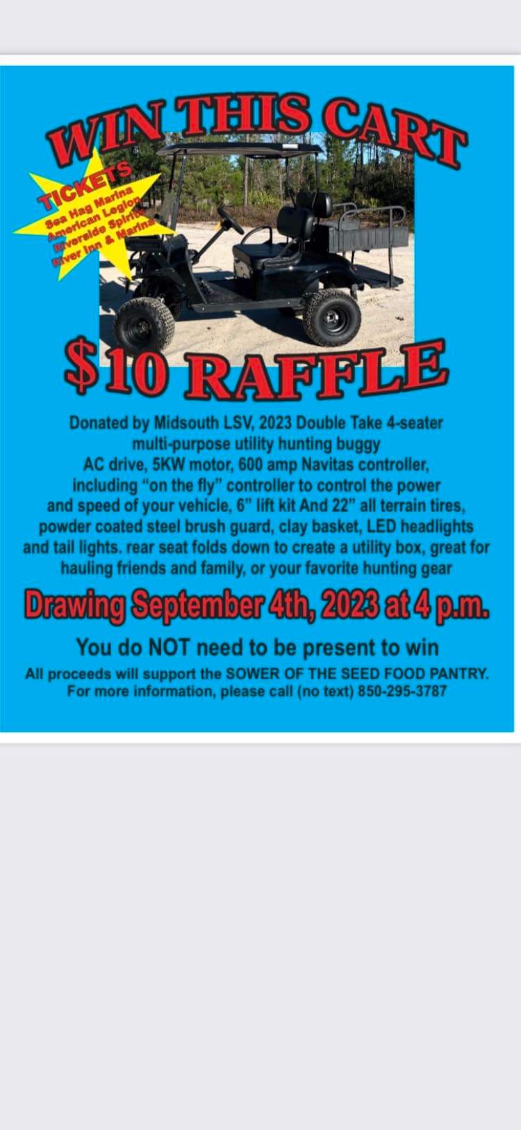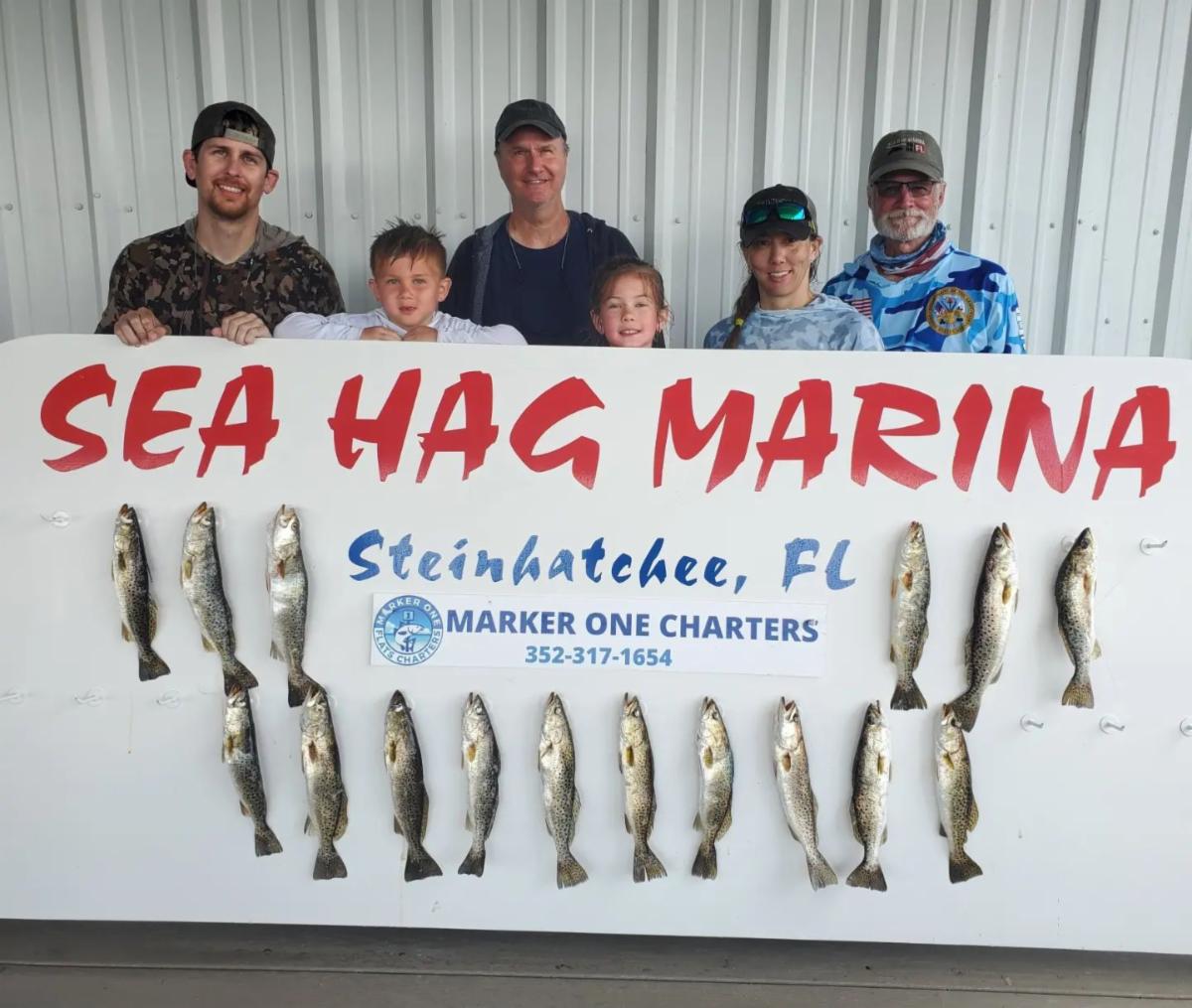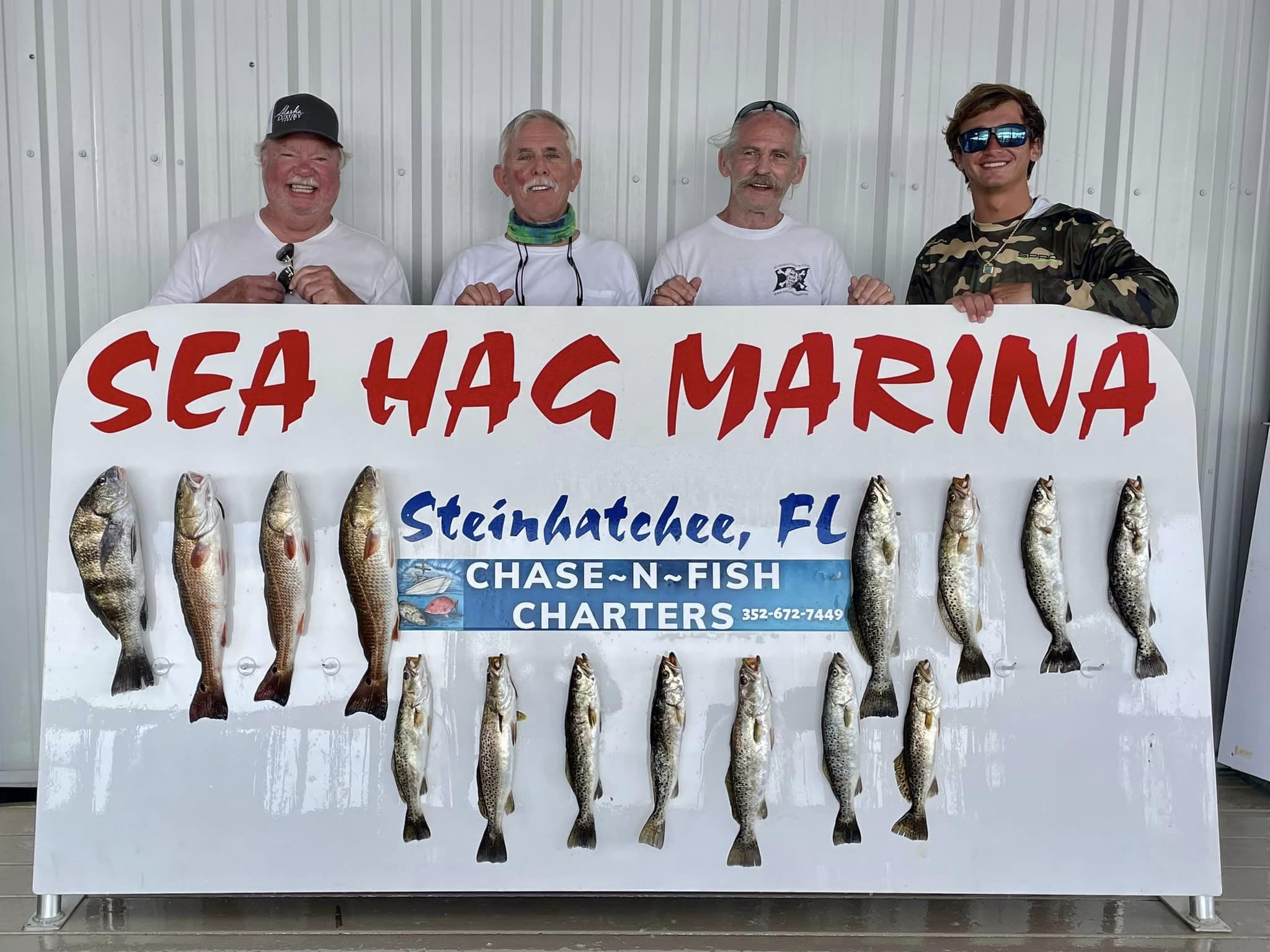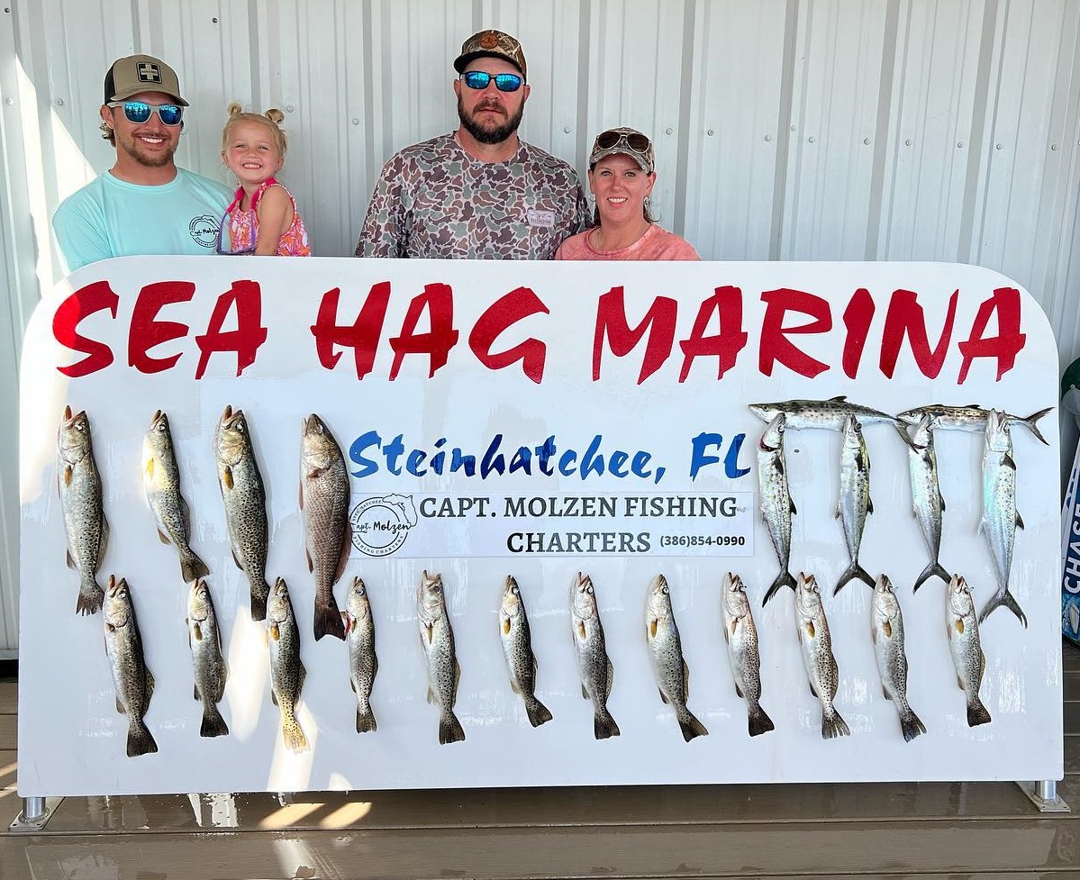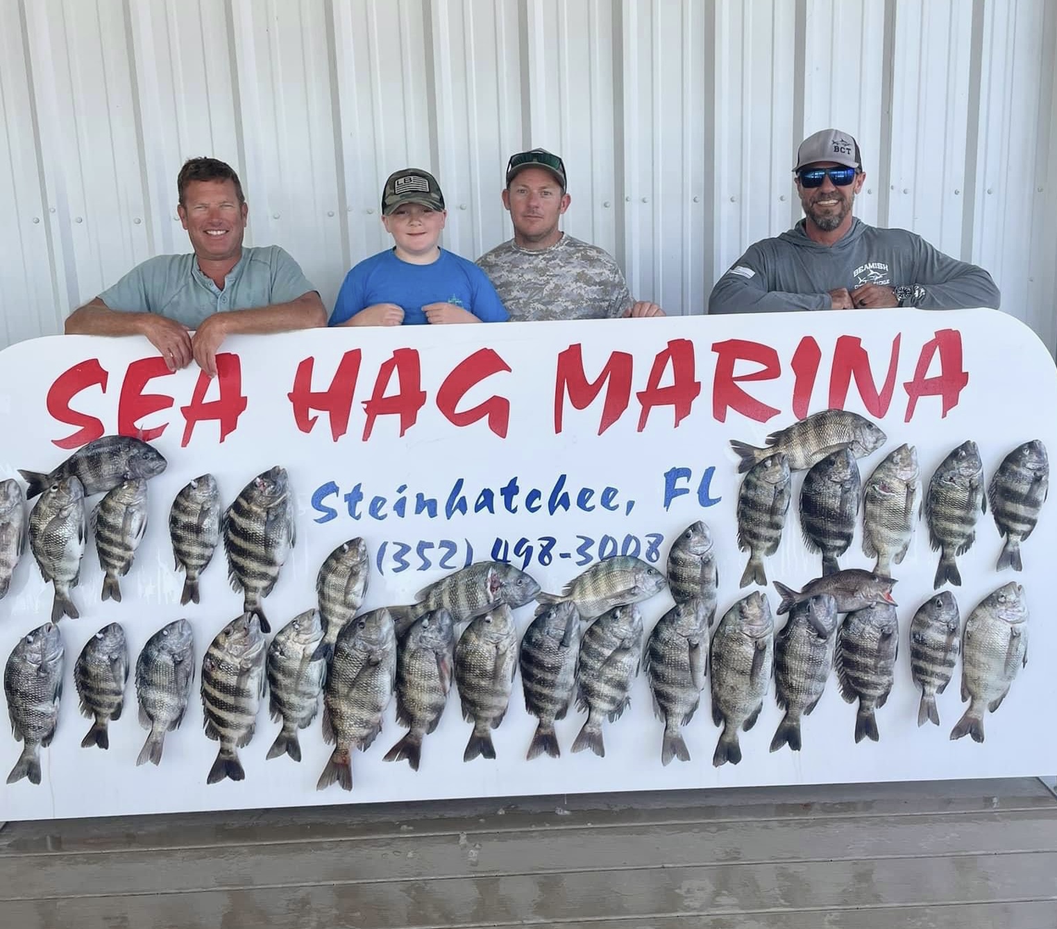 | We are doing something new & fun at the Sea Hag on April 22nd! A Scavenger Hunt! Join us at 12pm, Saturday, April 22nd! Free to participate! | This gentleman caught a perfect redfish while fishing the flats with Capt. Chase Norwood. | Win an awesome golf cart & support the local food pantry, Sower of the Seed! Purchase your tickets at Sea Hag Marina! | The Hughes family enjoyed a day of fishing with Capt. Chris Wagoner. | |