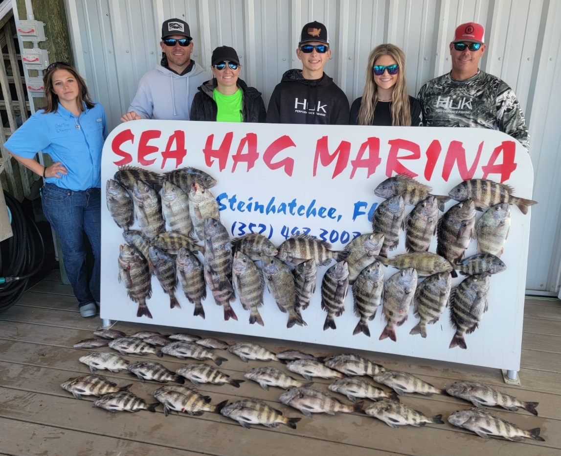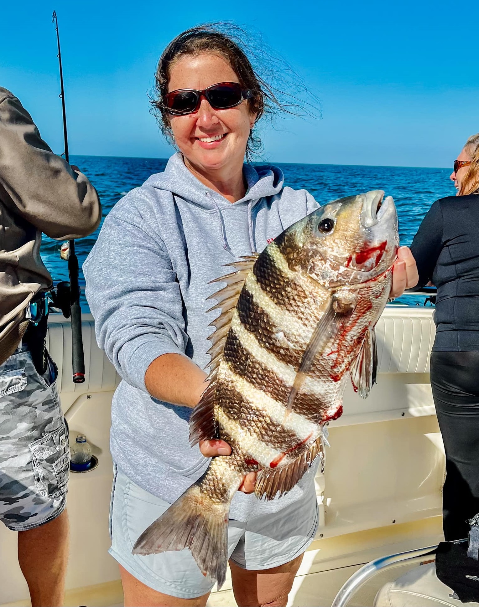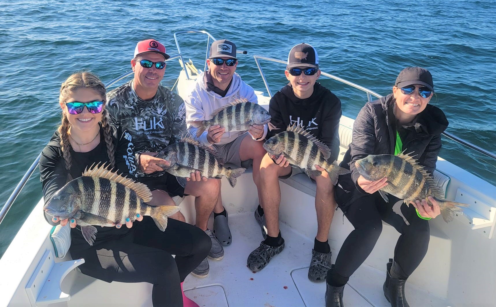 | Amy Southwell caught this gorgeous sheepshead while fishing with Capt. Jadon Bray. | Melissa and her crew tore up the sheepshead! Check out that full board! | |