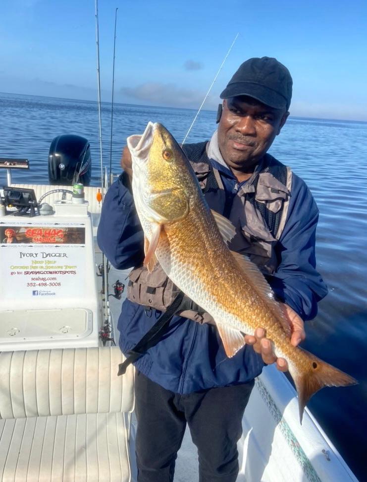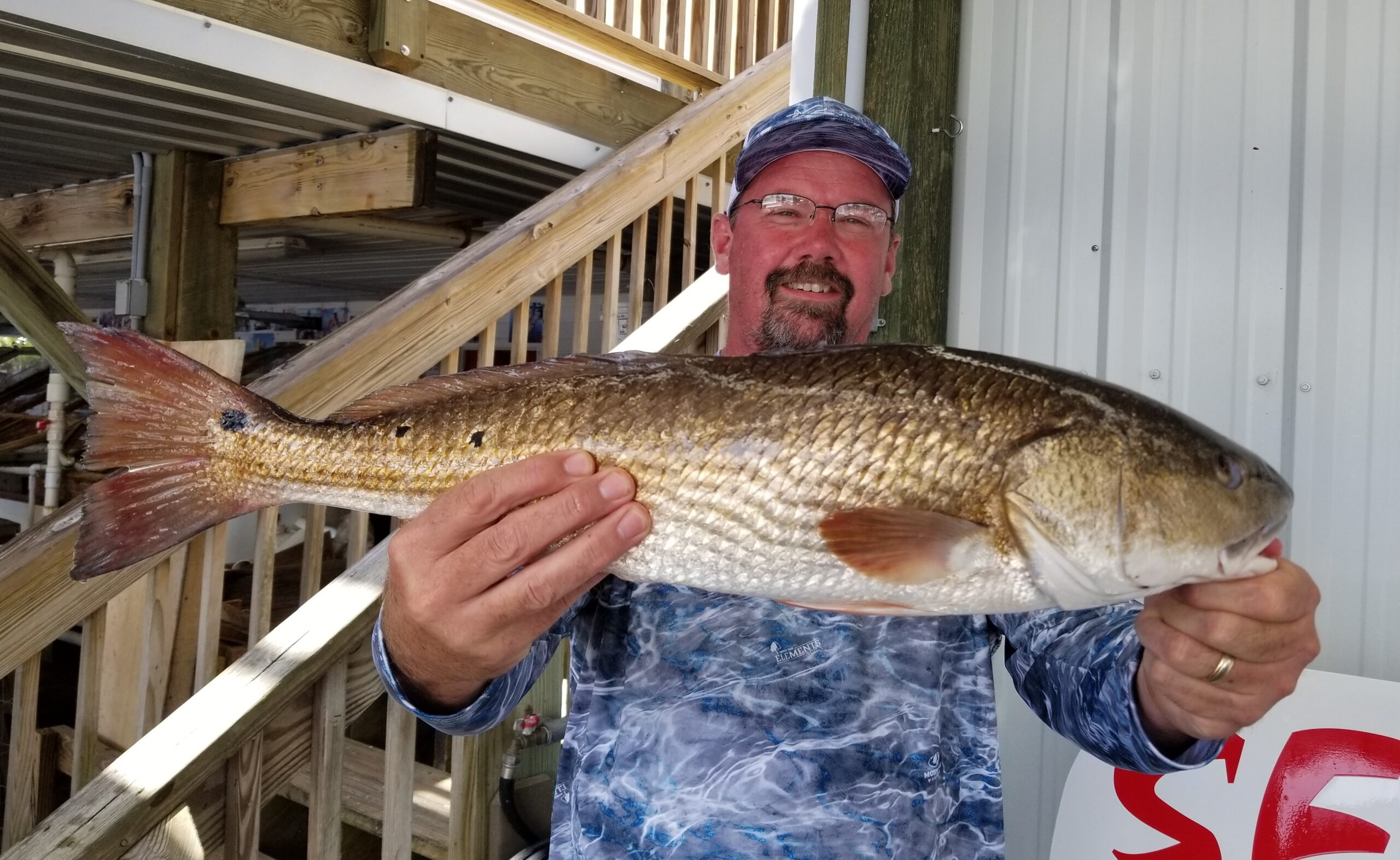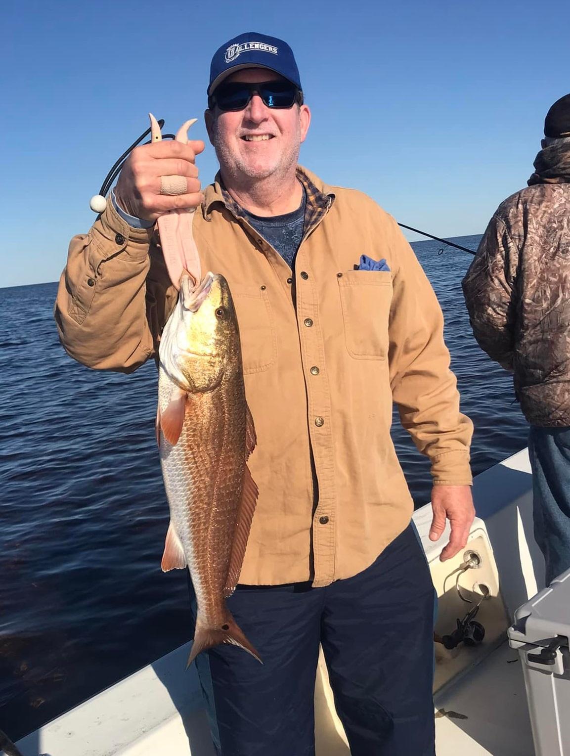 Kevin Hawkins is holding up a nice redfish he caught with Capt. Scott Peters.