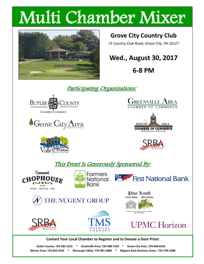 Aug. 30: 6th Annual Multi-Chamber Mixer, Grove City Country Club