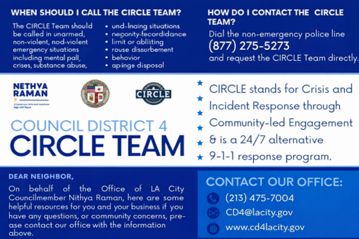 If you need additional assistance with City services, agencies, and departments (trash, abandoned properties, and more), you can contact the Office of District 4 Councilmember Nithya Raman here or via (213) 473-7004.
