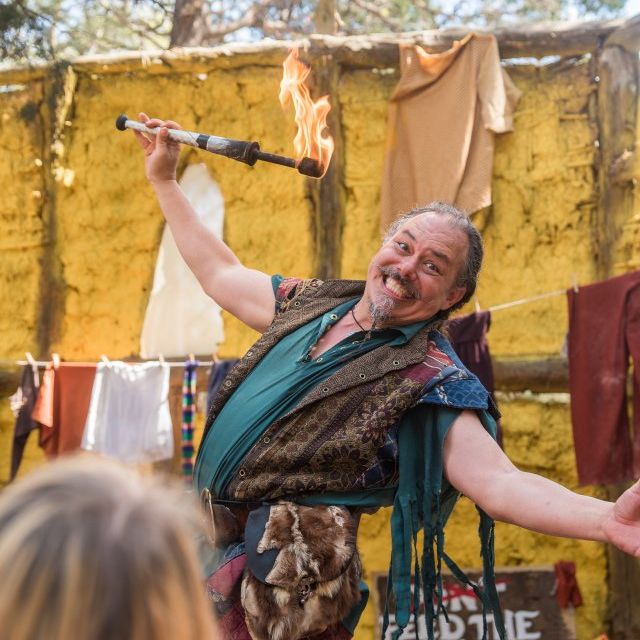 During Robin Hood’s Spring Faire, we have over 150 shows per day by more than 40 different stage acts. We have full contact jousting, falconry, fire juggling, knife throwing, 10+ live bands, comedy, sword fighting, and a castle siege. Shows for kids, adults, and both!