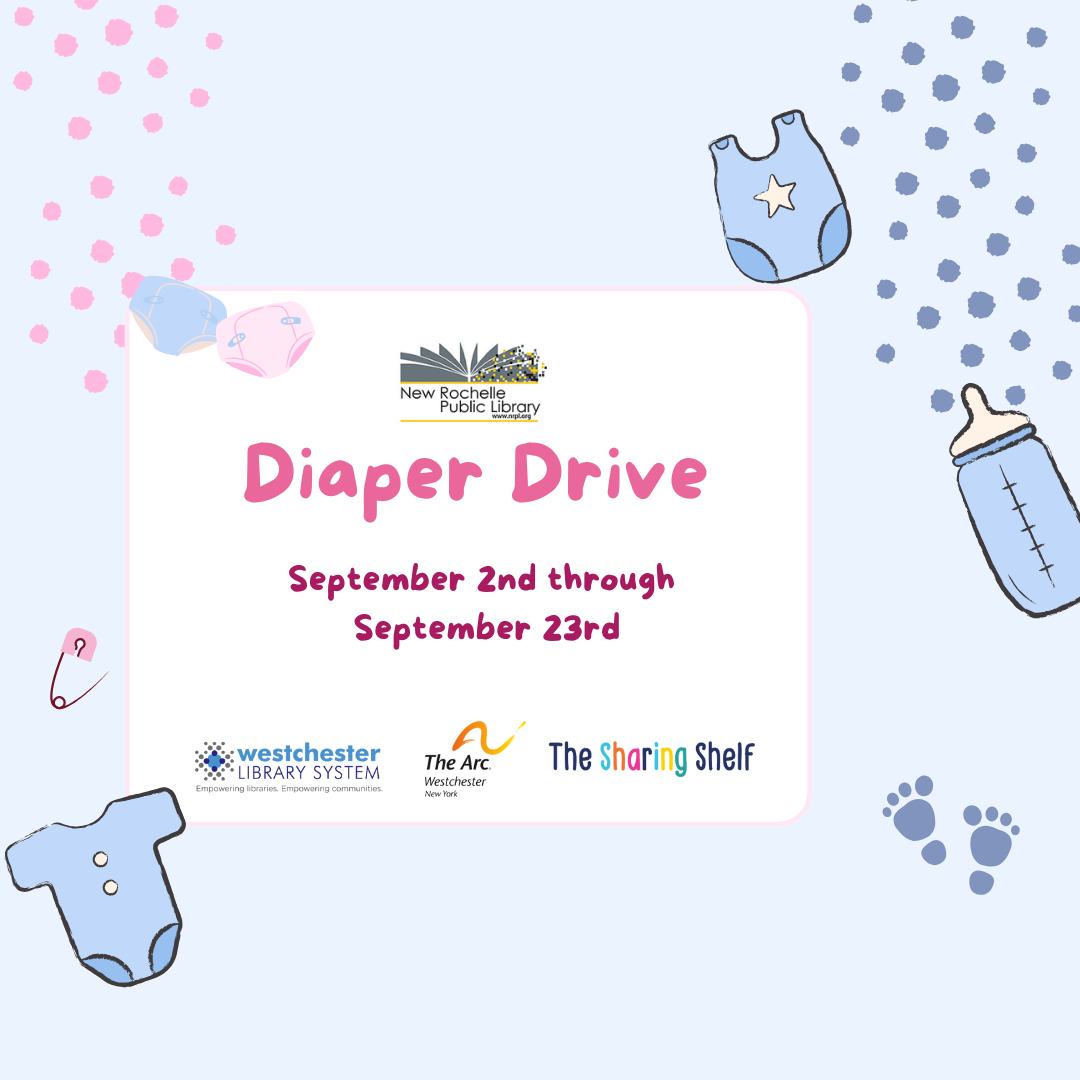 We're excited to announce that New Rochelle Public Library is a drop-off site for the Diaper Drive for The Sharing Shelf's annual effort to collect diapers for nonprofits county-wide.