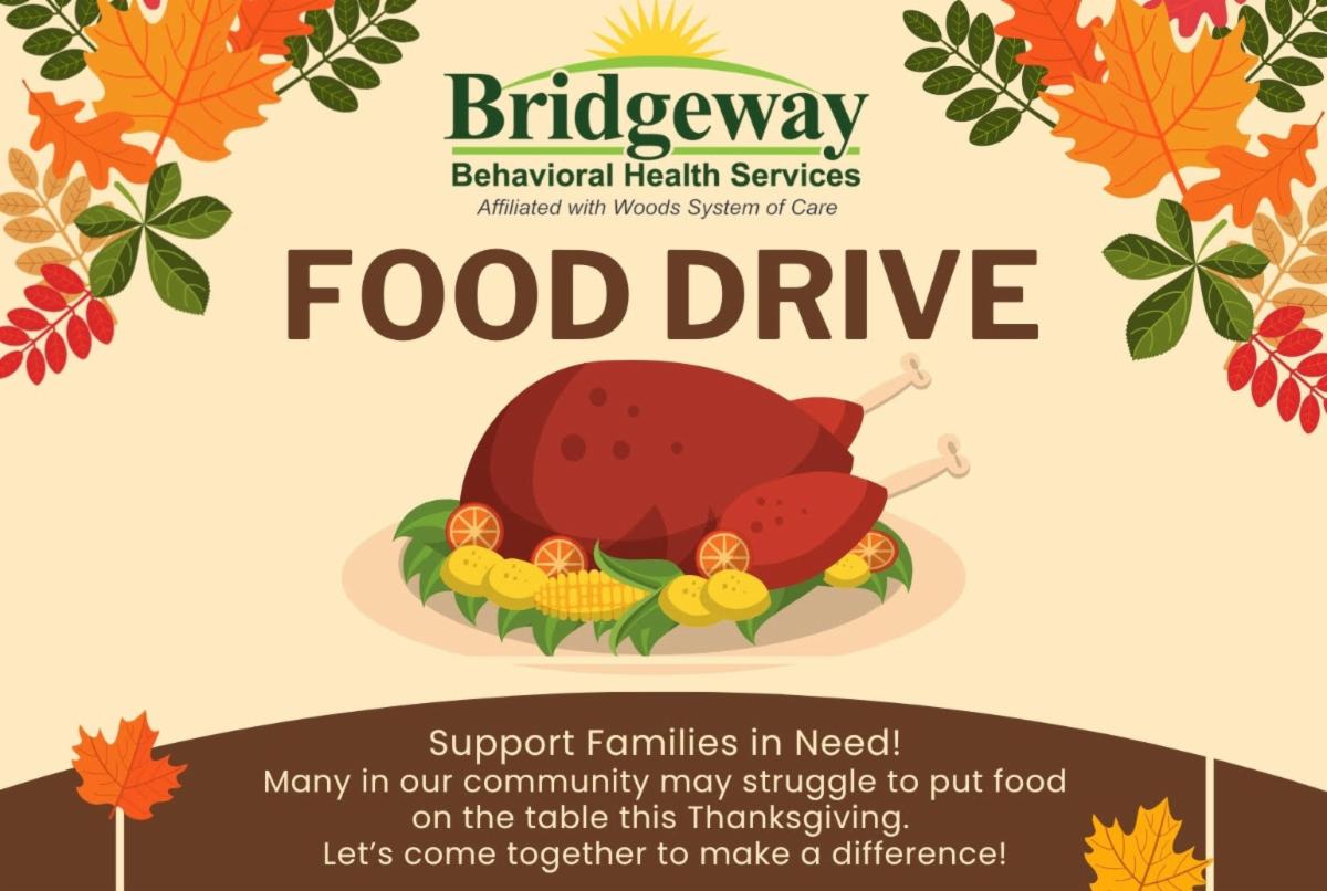 This holiday season, Bridgeway Behavioral Health Services is collecting non-perishable food items to help individuals and families we serve enjoy a warm Thanksgiving meal. Your generosity can make a difference for those facing food insecurity this season.