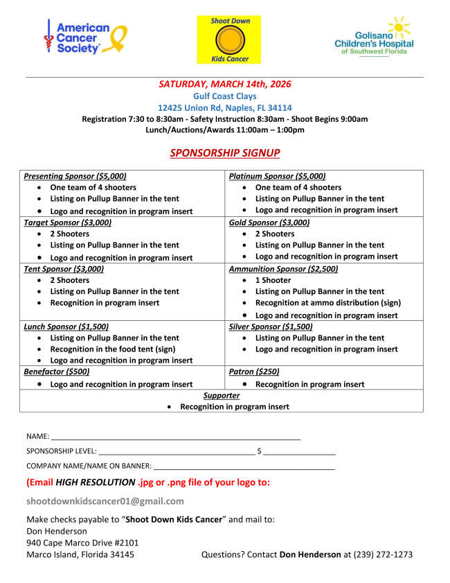 SHOOT DOWN KIDS CANCER FOUNDATION