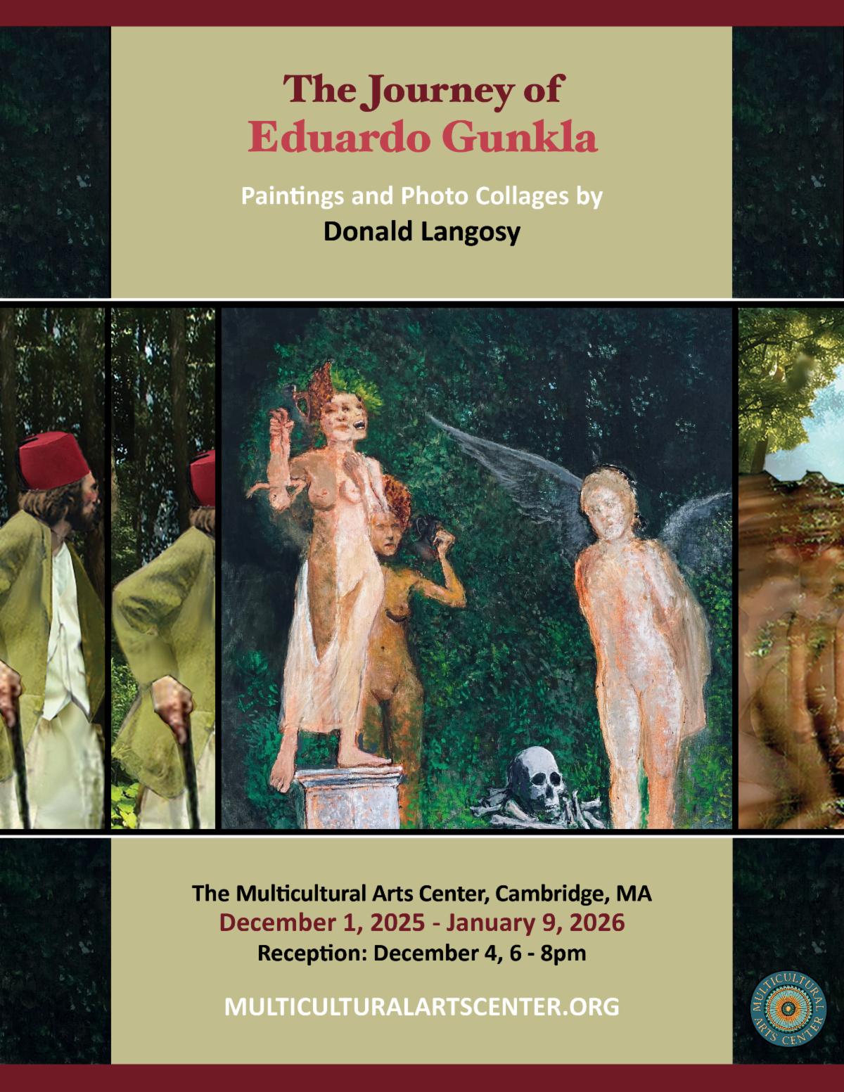 This winter, the Multicultural Arts Center proudly presents an exhibit of Donald Langosy’s new series, The Journey of Eduardo Gunkla, featuring a linked group of oil paintings and Photoshop compositions on canvas.