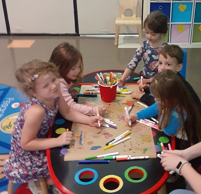 Rabbi Hoffman visited the Parparim, Devorim, and Nesharim classes this week. In the Parparim class they explored chesed, kindness, and how to practice it in their everyday lives. Rabbi Hoffman also fielded questions from them about the war in Israel and answered them with age-appropriate responses. Since they are learning about kindness, the Parparim class suggested a project to provide support to IDF soldiers and civilians in Israel so they know they are not alone.