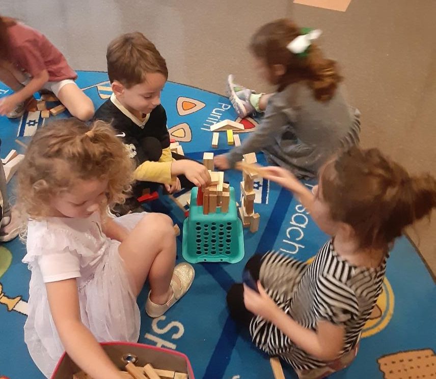 Afterward, the Ilanot students learned about the Tower of Babel and the challenges the people faced when they no longer spoke the same language. In order to help the children understand the challenge of working together without a common language, they built a tower together once without speaking to each other and a second time while speaking to each other. They said it was much more difficult to build the tower when they couldn't talk to each other.