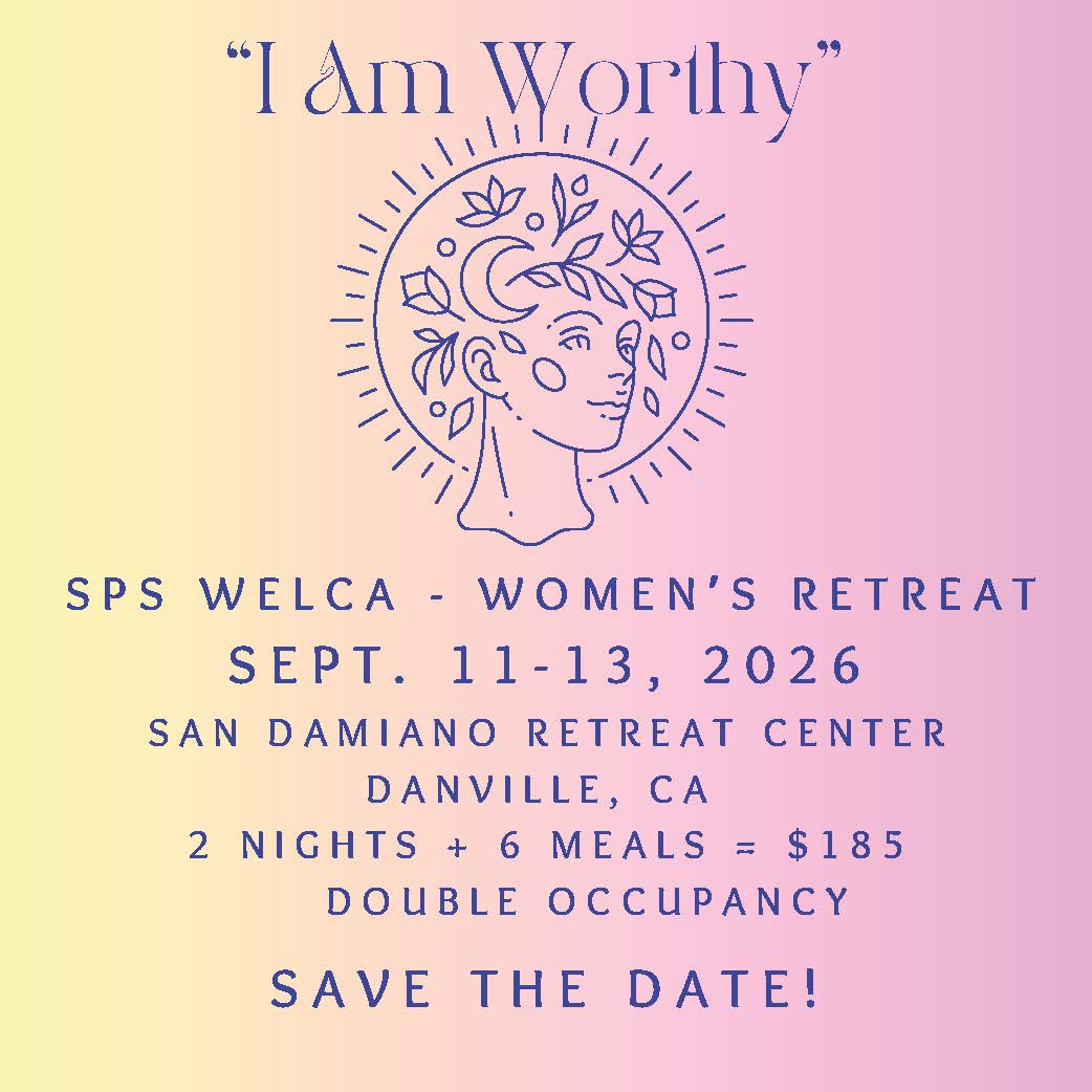 | | SPS Women of the ELCA Retreat will be held September 11–13, 2026 at the San Damiano Retreat Center in Danville, CA. Join us for a meaningful weekend of community, reflection, and renewal. Stay tuned for more details about guest speakers, workshops, and possible discounts! | | Upcoming Congregational Events | | |