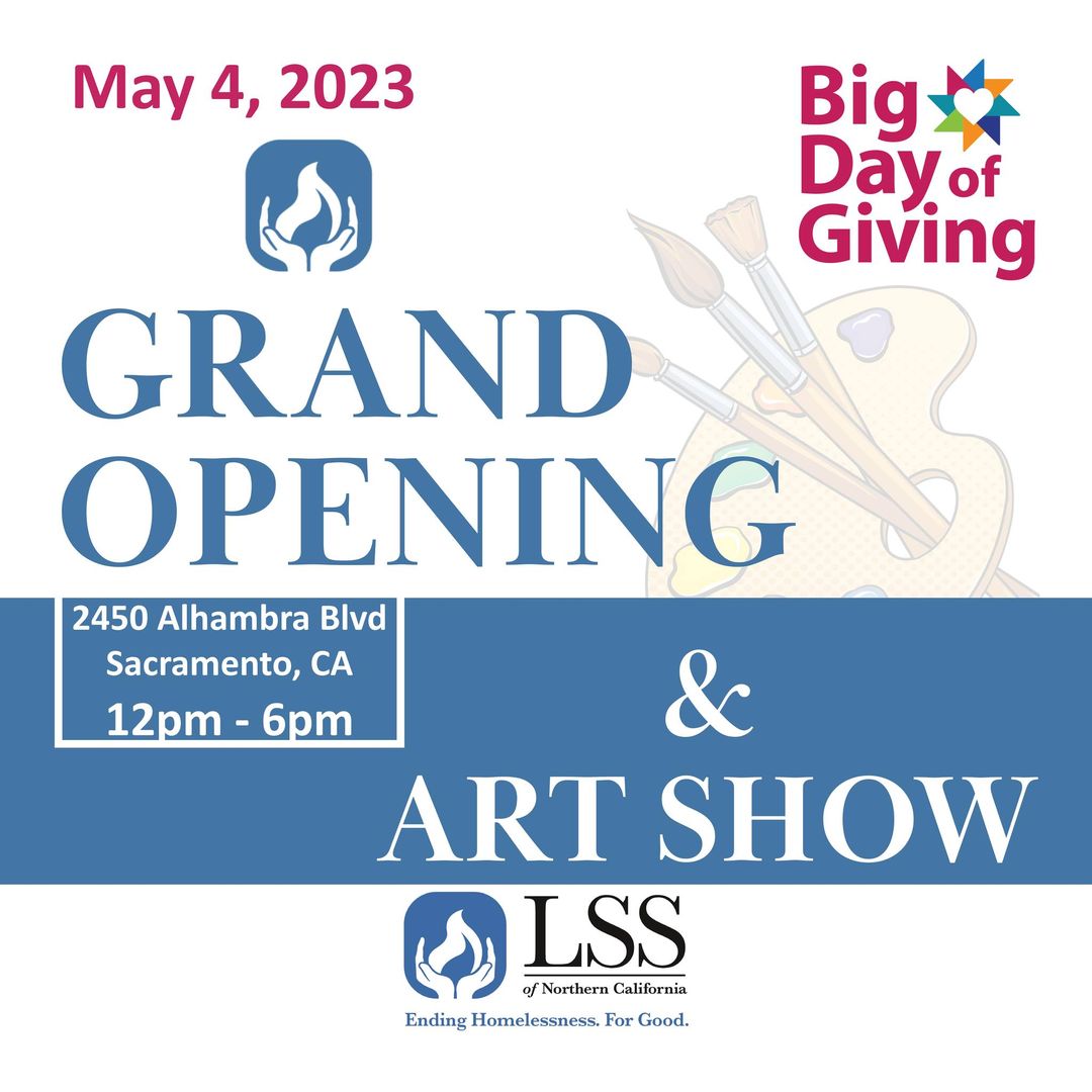 Lutheran Social Services of Northern California is hosting an Art Show and Grand Opening of their new Sacramento regional office this Thursday, May 4, 2023, from 12:00 - 6:00pm, and you're invited to attend! Held in conjunction with Big Day of Giving, the event features the artistic talent of formerly homeless persons who, with LSS programming, have the opportunity to express themselves, their experiences, hopes and dreams through artistic mediums. The exhibit includes oil paintings, watercolors, sculptures, mixed media, photography and more. All art is for sale.
