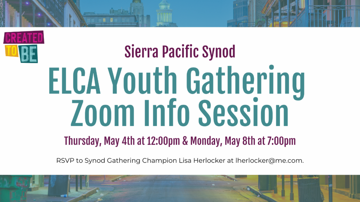 Are you planning to bring a group to the ELCA Youth Gathering next summer in New Orleans? Our Synod Gathering Champion, Lisa Herlocker, is hosting two zoom info sessions this May to share information and updates about the 2024 Gathering!