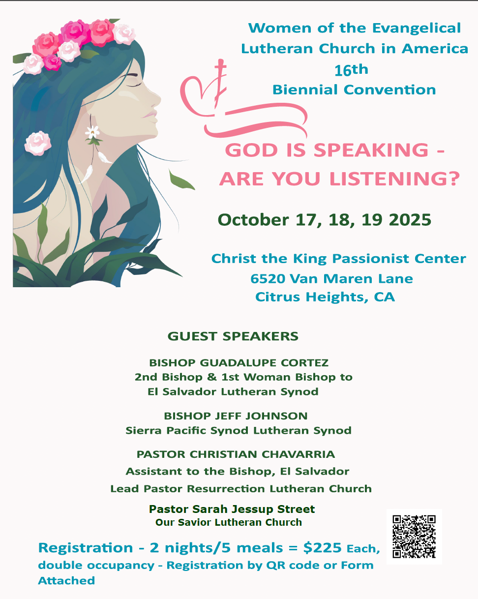 Join SPS WELCA for their Biennial Convention on October 17-19, 2025. The weekend will include worship, community, and inspiration — featuring guest speakers from El Salvador, a Taizé service, updates from WELCA, and more!