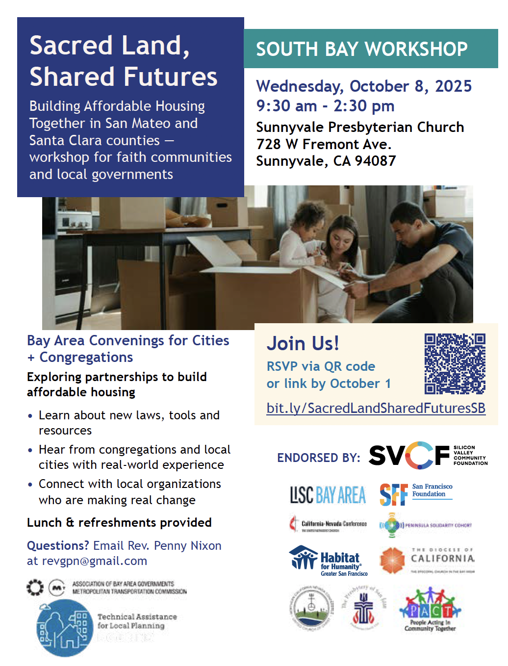 Are you in the Bay Area and wondering how your faith community can partner with your city so everyone has a safe, affordable, and welcoming place to call home? Join us for a hands-on workshop to learn from communities already doing this work—and leave with practical tools you can use right away.