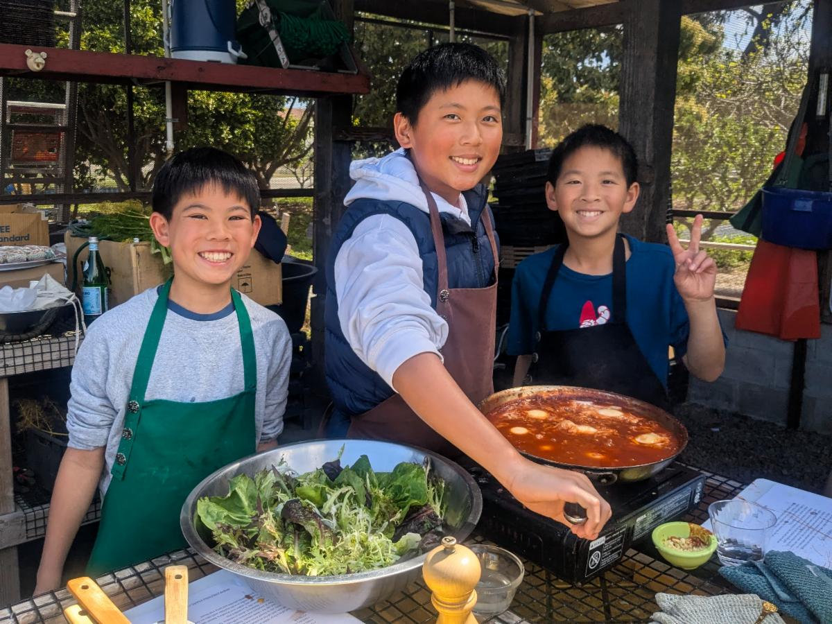 The prizewinning family used this opportunity to celebrate the 14th birthday of their son, Quinton, with family and friends. The day was led by our East Bay Regional Director and instructor Chef Polly Sang, who is herself a volunteer with APC. She reports, “Thankfully the weather cooperated and the kids had SO much fun picking strawberries, harvesting fennel, picking up all the citrus on the ground. It was truly a farm-to-table experience!”