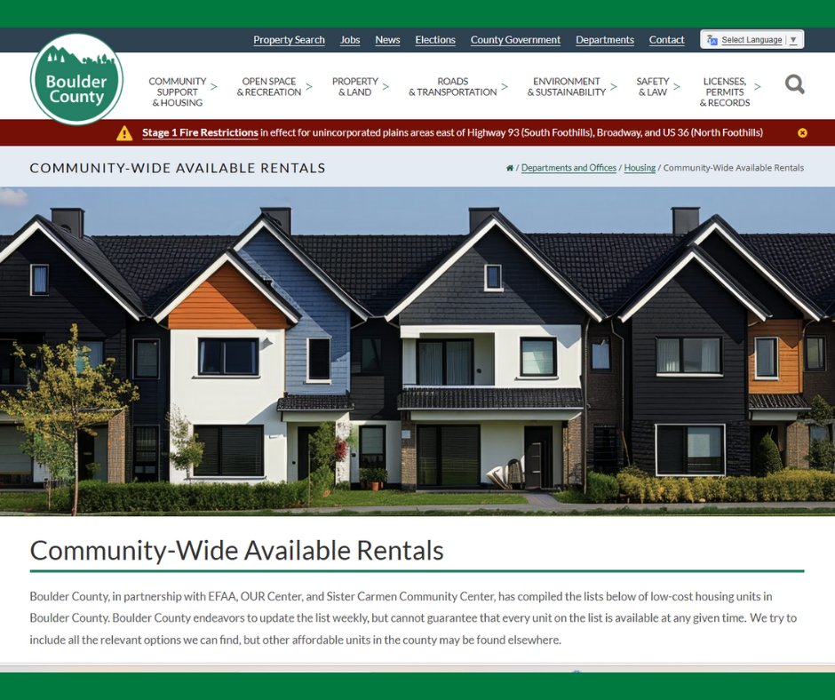 The Boulder County Family Resource Network is celebrating the first anniversary of its Community-Wide Available Rentals website, which helps residents search for affordable rental housing across Boulder County.