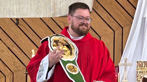 And yes… the wrestlers and championship belt were officially blessed by Fr. Dan before he headed off to his next assignment!