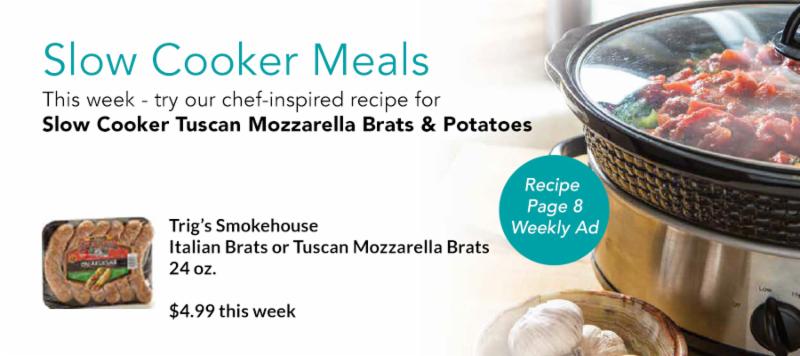 Slow Cooker Meals below is sure to be a hit and is made with our Smokehouse Brats.
