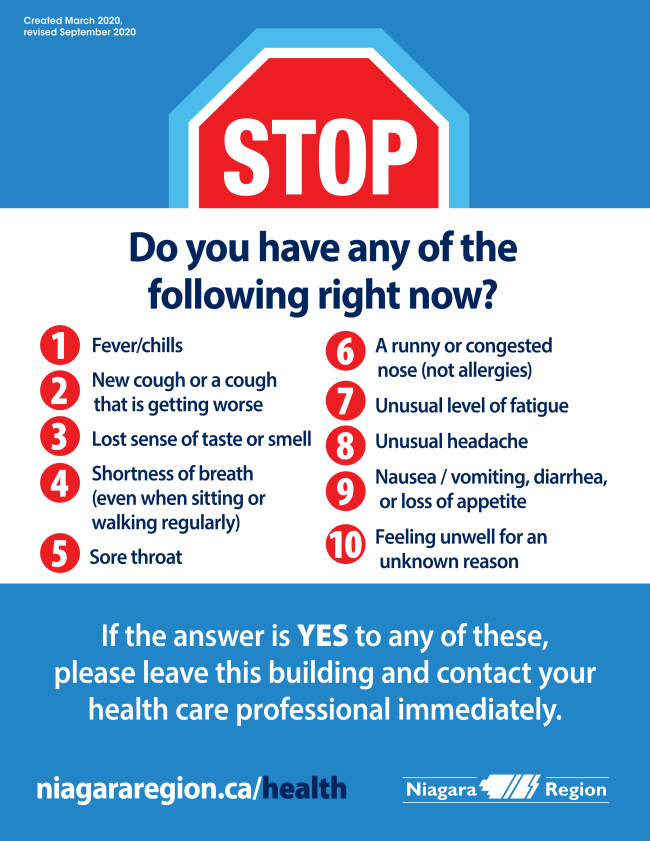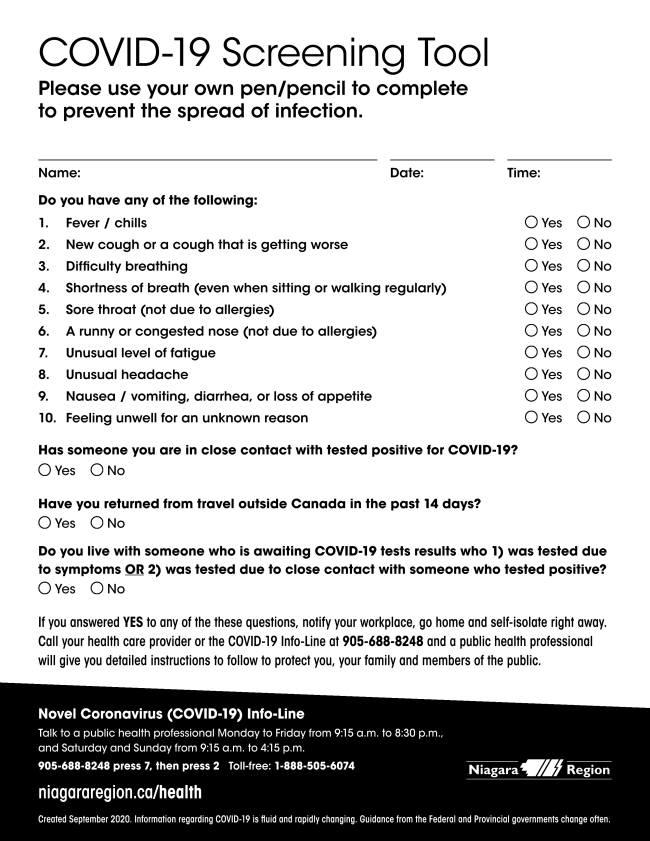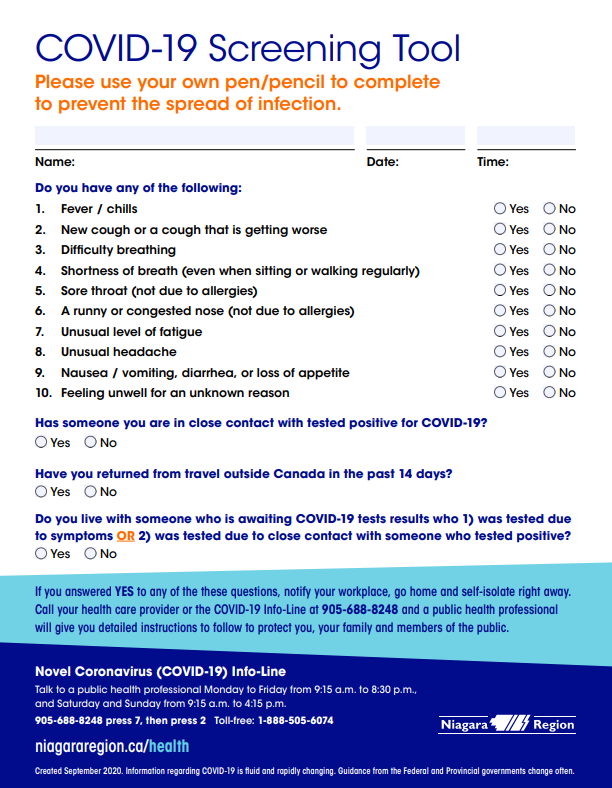 The Niagara Region has developed materials to help businesses communicate screening measures, including: