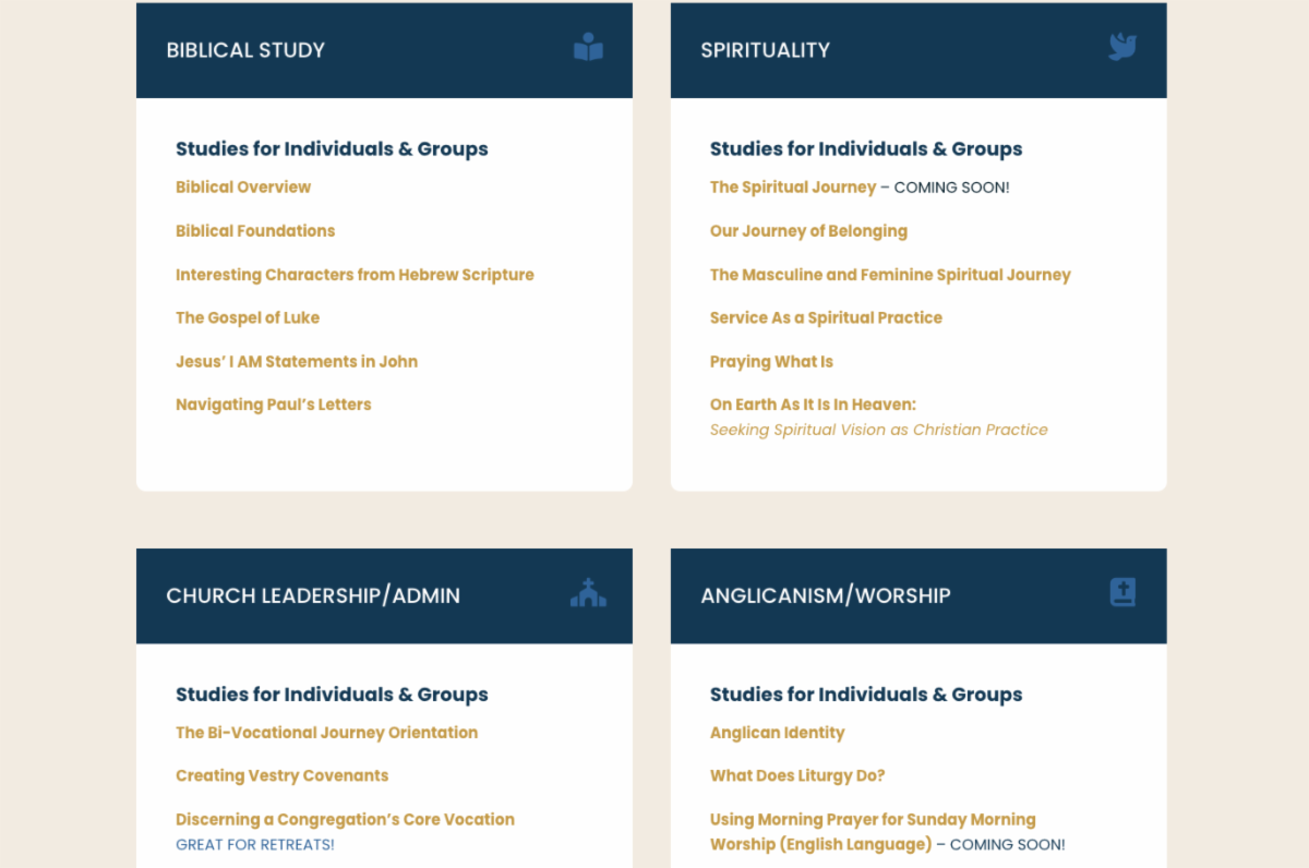 | | Jana Milhon-Martin from the Center for Lay Chaplaincy and her Pastoral Care retreat track members. | | Annual Retreat participants Ashley Cook and Tania Wilkes check in with each other on a break. | | At the end of a retreat day, it's always nice to sit outside and celebrate together! | | New Congregations Page on Iona Website | | The Congregations page of the Iona website has a new look and is chock-full of free resources for your church! Browse through eight categories of materials, from Creation Care and Preaching to Church History and Pastoral Care, and more! You'll find a variety of studies for individuals and groups, retreat resources, podcasts, and videos. We will be adding to this catalog regularly, so check back often! | |