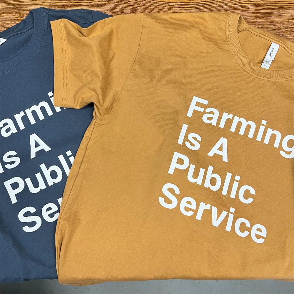 | Something else we have been hearing, people want this shirt. You might have seen them at the Farm to Plate Annual Gathering. Available through the ACORN Food Hub. Grab some while supplies last & give them this season | |