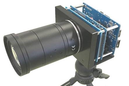 The EasyMVC development kit is a complete camera platform that includes hardware and software source code, schematics, and the bill of materials. This development kit consists of three boards (image sensor, Intel FPGA, and interface); the modular design permits each section to be modified with minimal effort to accommodate application-specific requirements for evaluation and system implementation (i.e., custom sensor boards). Currently, two sensors (Sony IMX420 and IMX421) and five system interface options (HDMI, USB 3.0, CoaXPress, 1GigE, and 10GigE) are available.