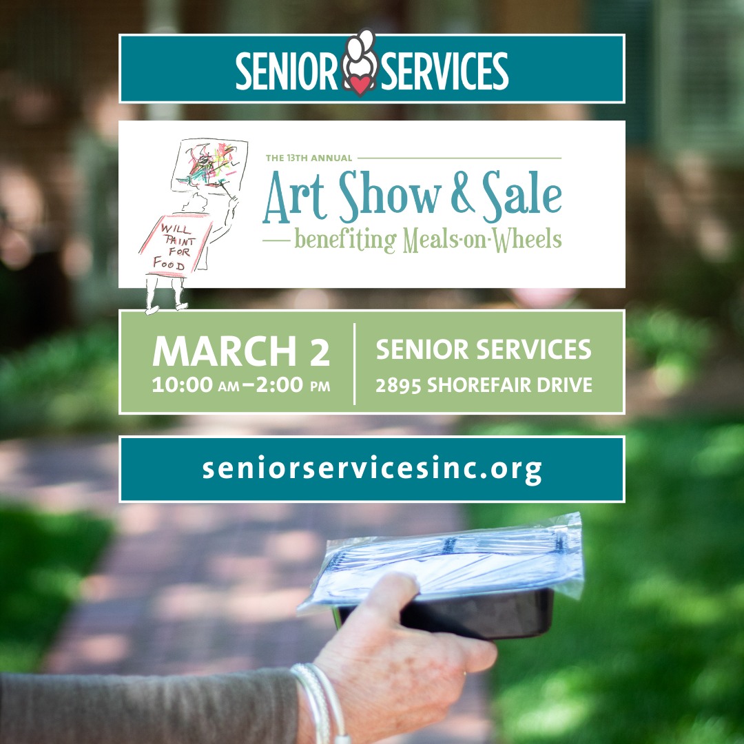 Did you know sales from the 14th annual Art Show & Sale help to provide food and connection to older adults in need of nutritional support? That’s right! By purchasing a beautiful piece of artwork for your home or office, you are helping a neighbor when they need it most.