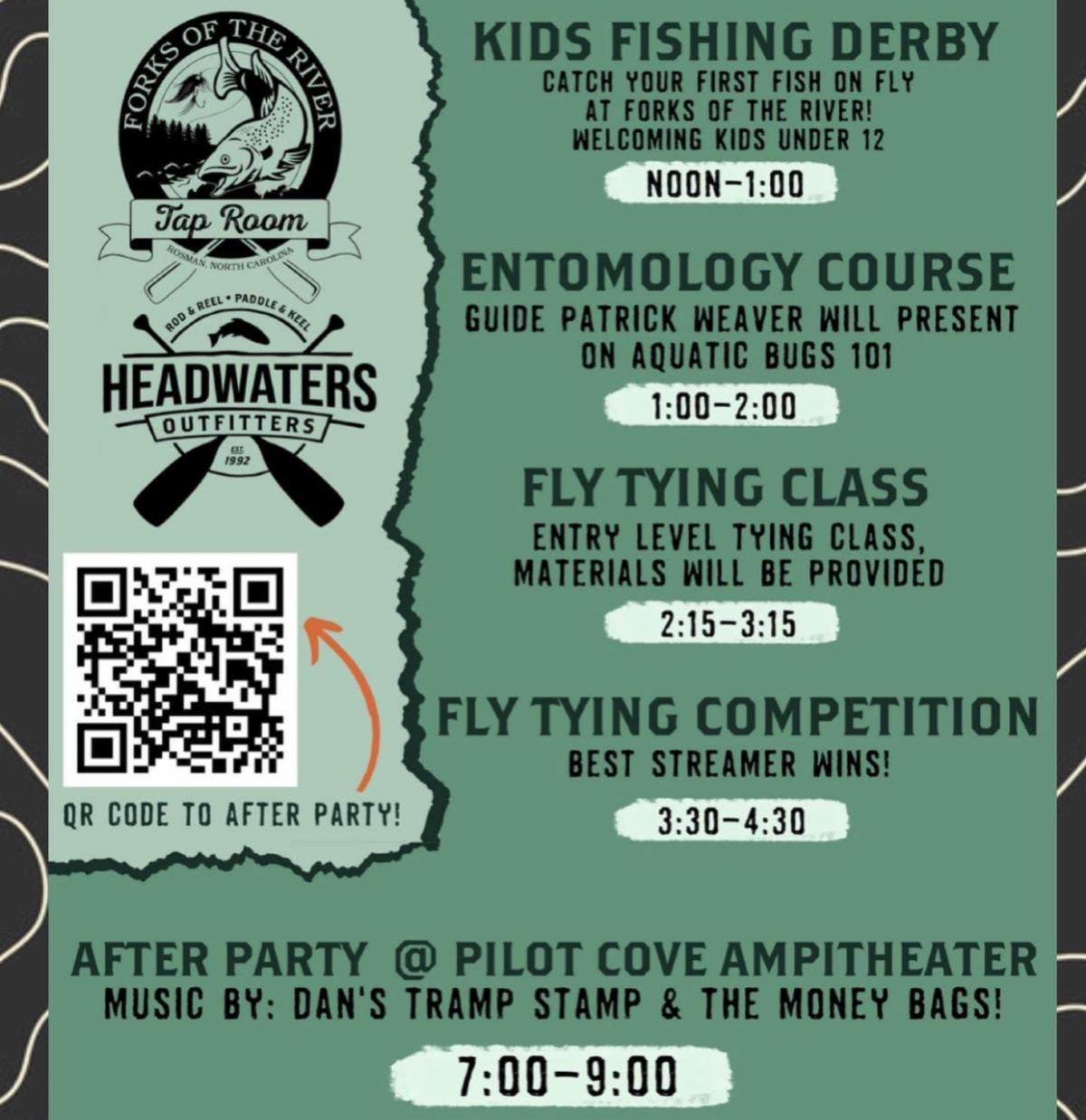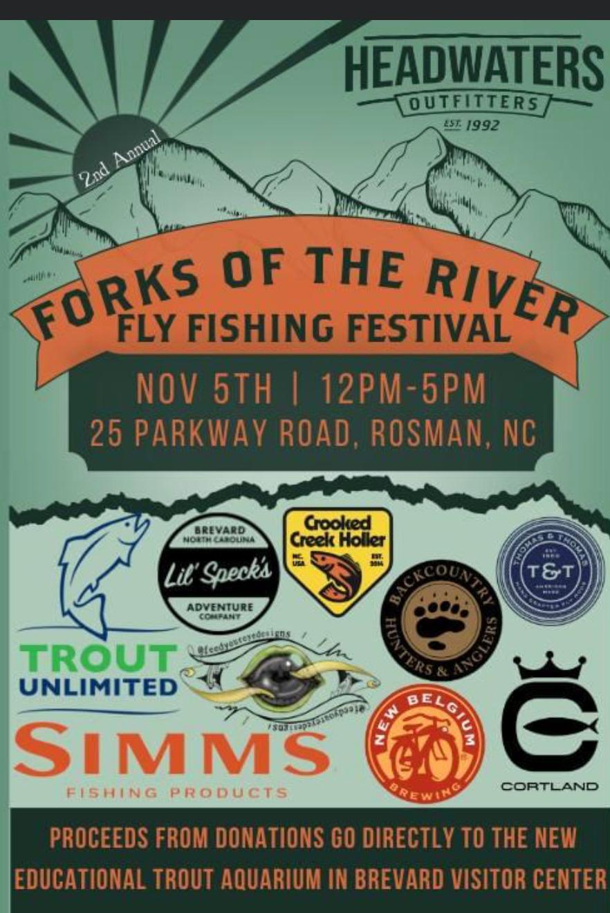 I hope to see you at Headwaters Outfitters on Saturday, November 5 for the 2nd Annual Forks of the River Fly Fishing Festival. This will be great afternoon of family fun, followed by music and fellowship at the After Party at Pilot Cove in Pisgah Forest. This event will raise funds for PCTU to set up a live trout display at the Transylvania/Brevard Chamber of Commerce Visitors Center. Please see the details below.