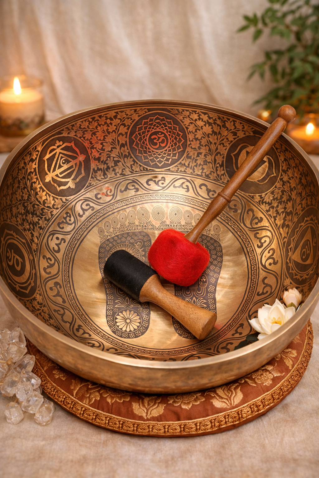 Step into a deeply grounding sound healing experience using my 18” Tibetan Foot Singing Bowl. During this session, you will place your feet inside the bowl while it is gently activated, allowing healing vibrations to move through your entire body. It is an experience like no other, you will be amazed by the experience.