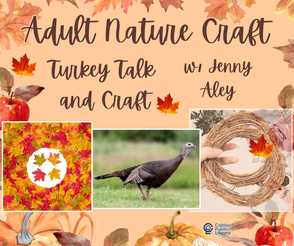 Let's talk turkey with naturalist Jenny Aley in this month's adult nature craft. And, make a Thanksgiving decoration with natural materials. Don't forget to register!