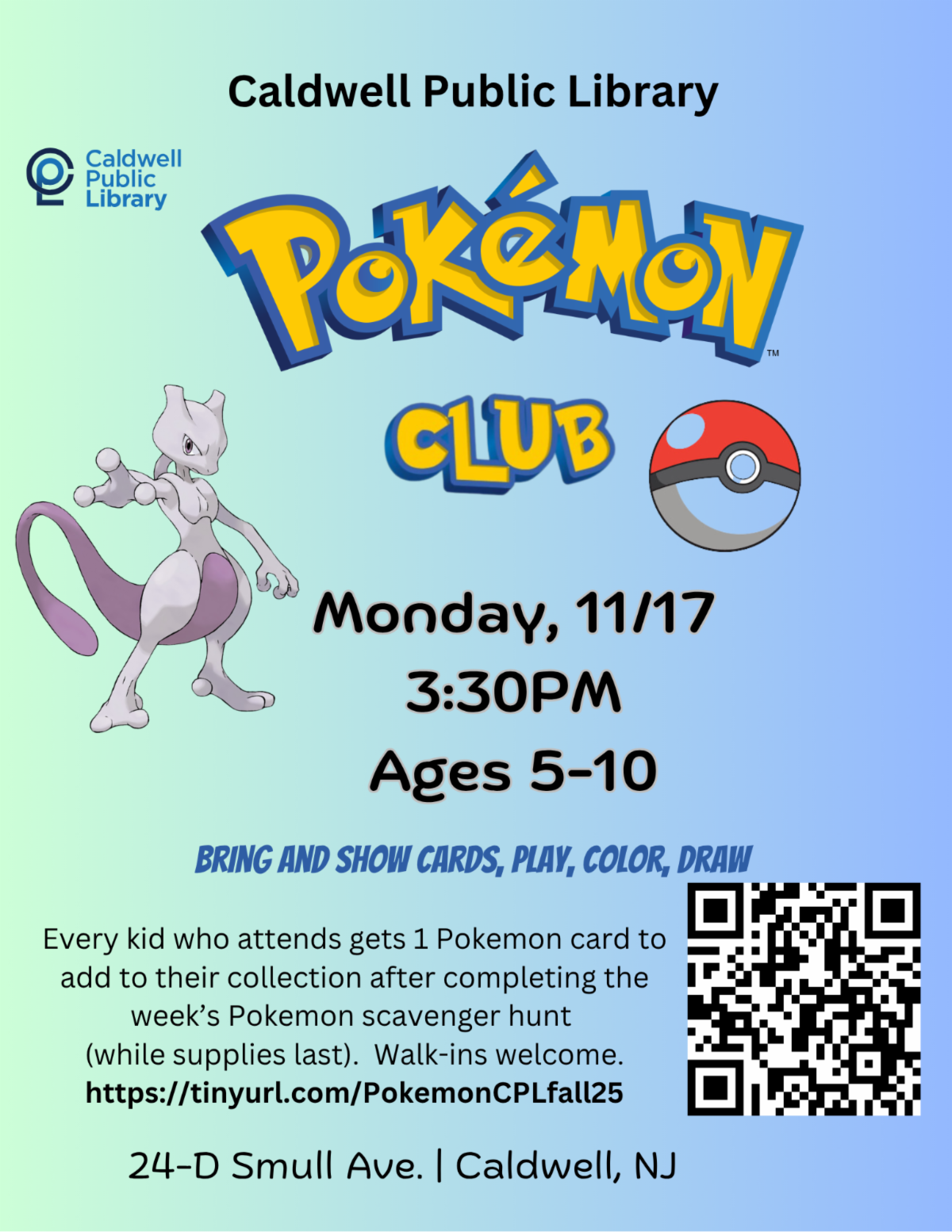 *Registration by time slot is required. Email librarian@caldwellpl.org to reserve your slot.