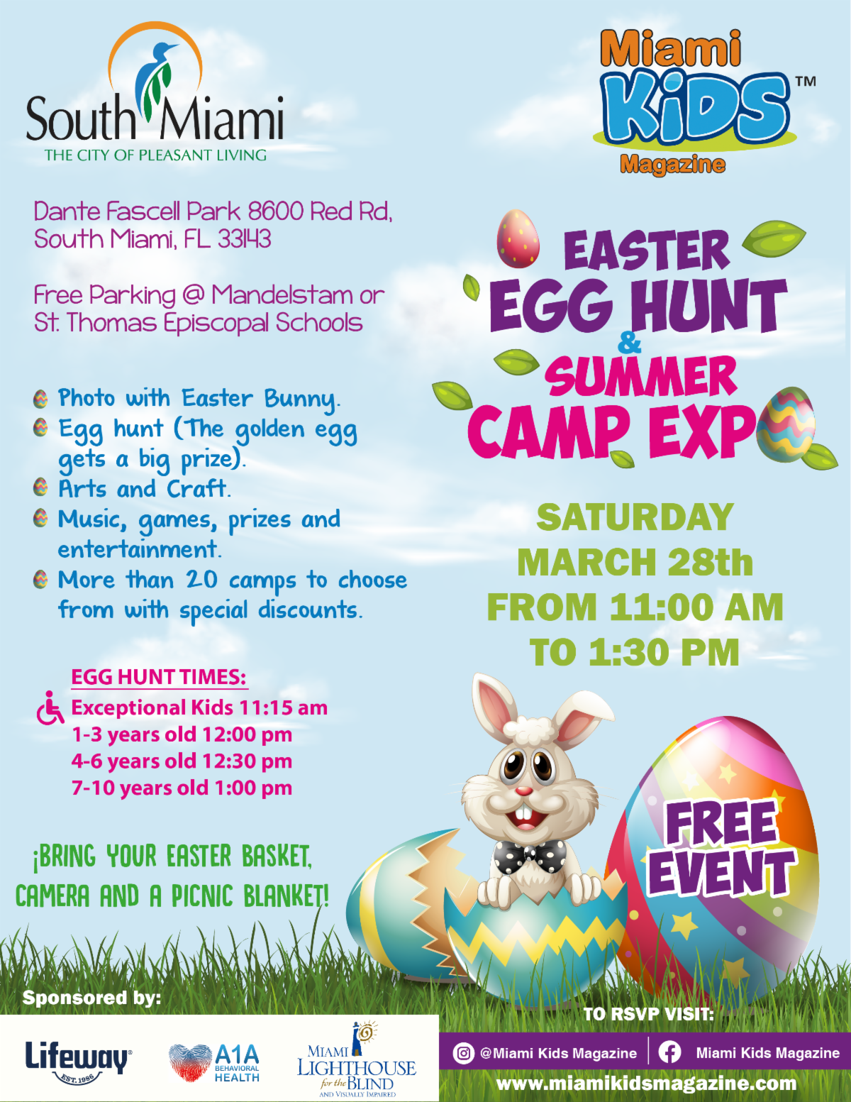 🌸🐰 Hop on over to South Miami for a day of family fun at the Easter Egg Hunt & Summer Camp Expo! 🥚🌷