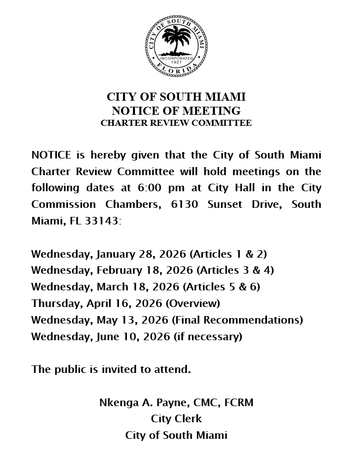 Location: South Miami City Commission Chambers: 6130 Sunset Drive Sunset Drive