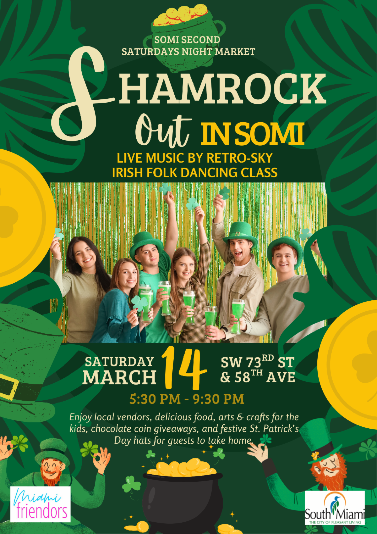 Join us for a festive evening under the stars at the #SoMiSecondSaturdays Night Market a free, family-friendly, and pet-friendly community celebration filled with Irish flair, live entertainment, and St. Patrick’s Day fun! 🍀🎶