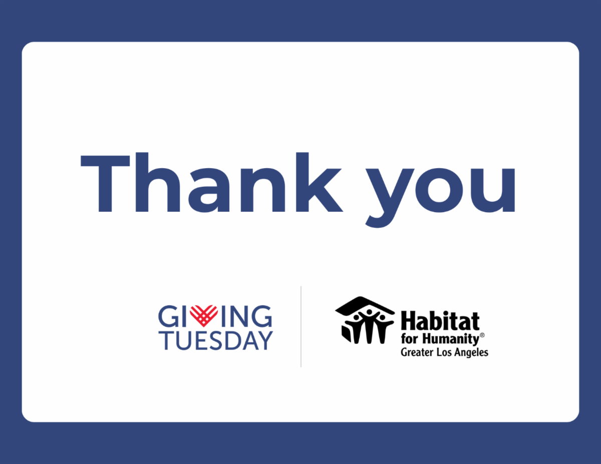Giving Tuesday is more than a day on the calendar—it’s a worldwide celebration of radical generosity. As we reflect on the power of this movement, we want to extend our heartfelt thanks for your continued support of Habitat LA. Your contributions help us build and preserve affordable homes, strengthen neighborhoods, and expand hope for families across Los Angeles County.