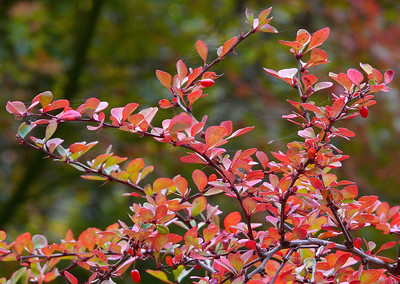 For color, barberry bushes (Berberis thunbergii and cultivars) are some of the most beautiful of landscape plants, with striking variations of spring and autumn colors. The yellow-to-orange flowers produce waxy red-purple berries.