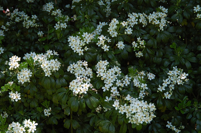 Mexican orange blossom (Choisya ternata) is an evergreen bush known for its showy white blooms in summer and intoxicating fragrance. It also attracts both butterflies and bees. Mexican orange blossom grows from four to eight feet tall and wide and prefers afternoon shade, with full shade in the hottest locations. Plant it in soil with good drainage; it is moderately drought tolerant once established. It has no serious disease or insect issues and needs little pruning other than removing dead or damaged branches.