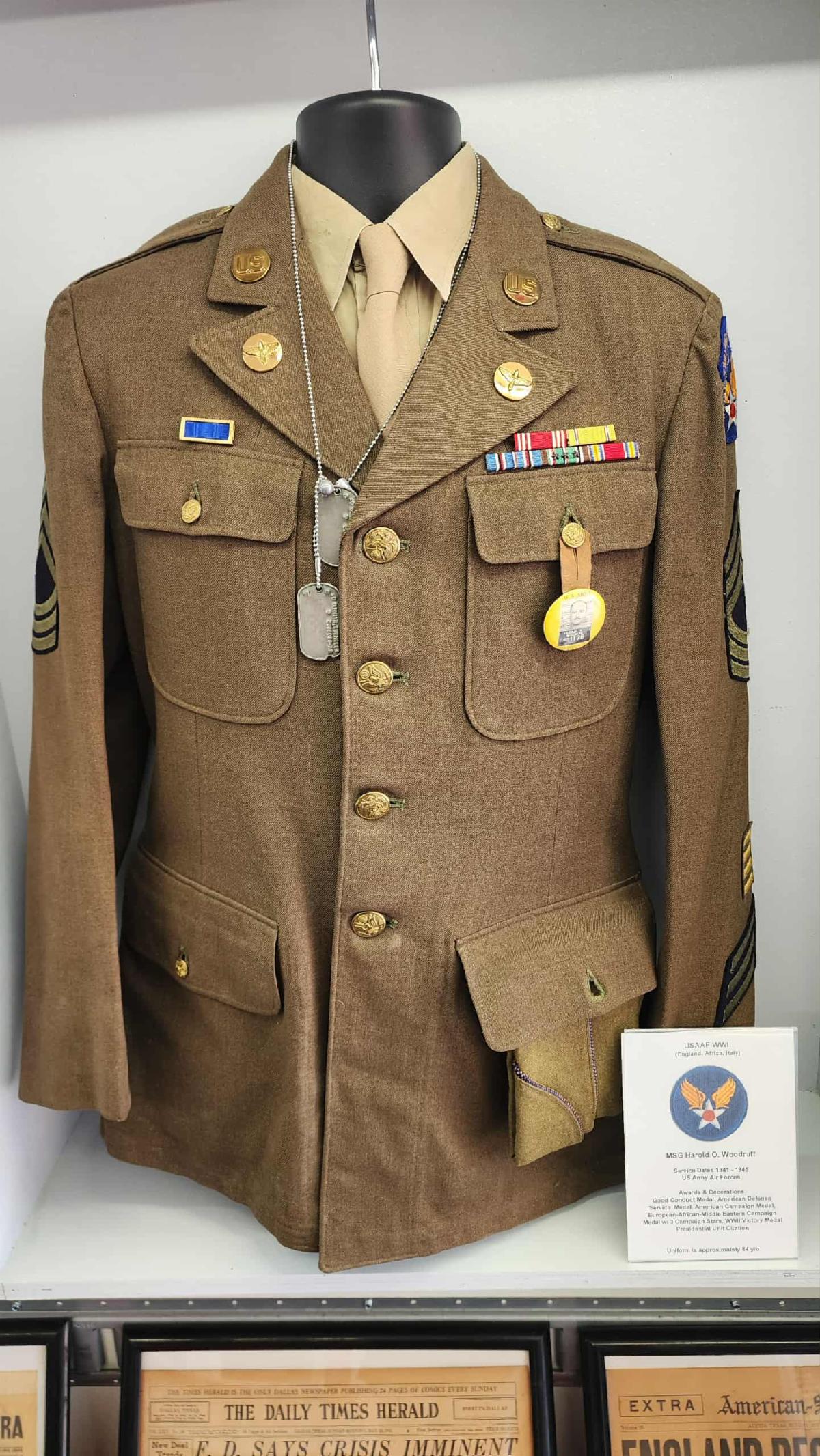 MSG Woodruff's dress tunic was selected to represent the U.S. Army Air Forces in World War II in the "America at 250" exhibit at the Army Air Corps Museum Mobile Museum.