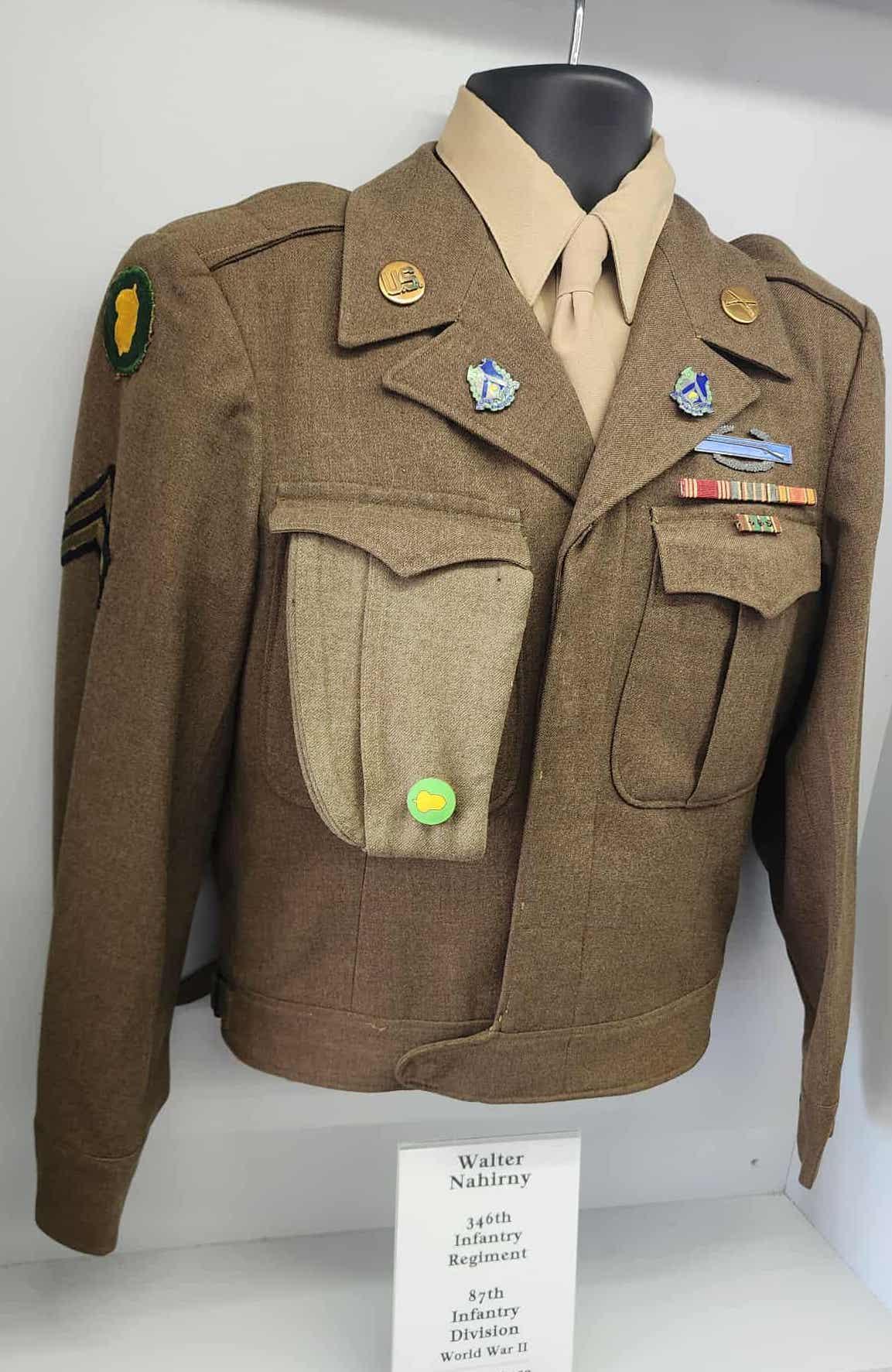 Walter Nahirny served in the 346th Infantry Regiment of the 87th Infantry Division in Europe during World War II. Corporal Nahirny's uniform is part of the Sons of Liberty Museum's collection.