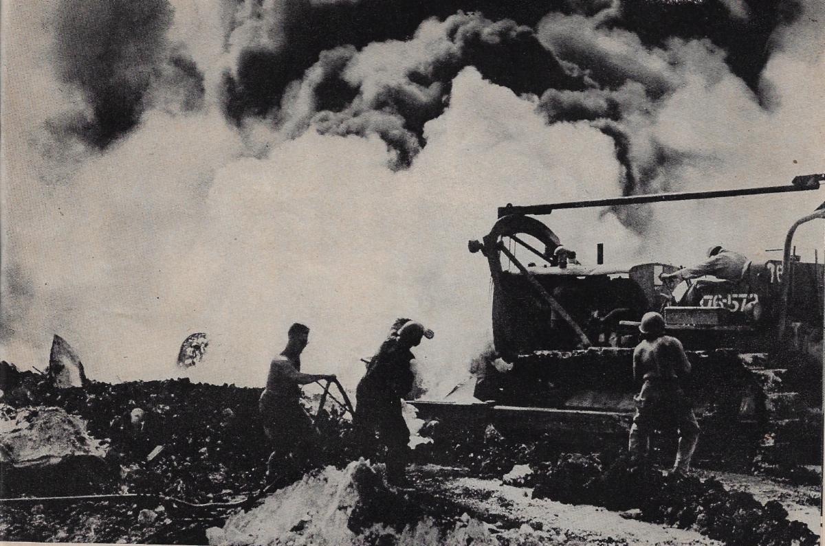 One of the most important pieces of machinery was not a combat vehicle at all. It was a bulldozer. These earthmovers helped with fires like the one pictured above. They help build airfields in North Africa and on the islands of the Pacific. They also dozed the jungles of the CBI and built the Ledo Road.