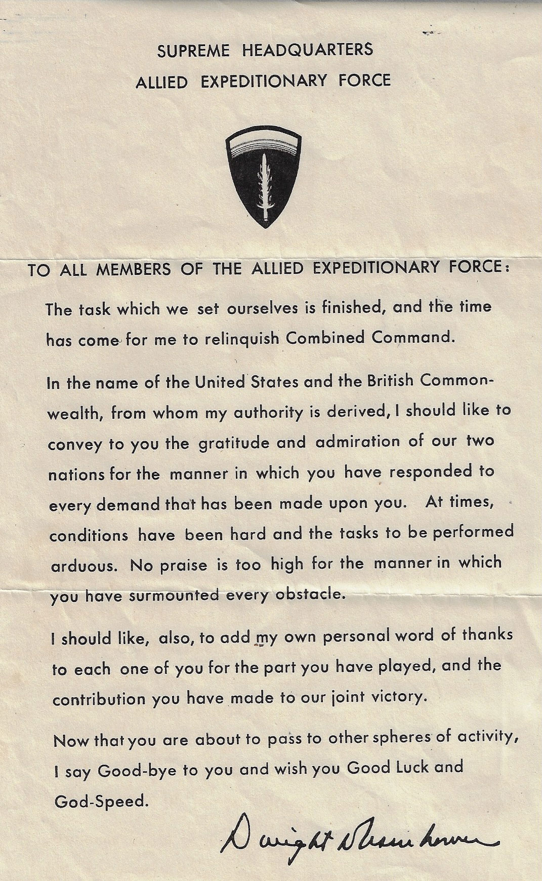 We continue with our history of America at 250 in this October Issue. Artifacts from a member of the 5th Army Air Force and another from the 79th Infantry Division of World War II. Then some paper artifacts, special messages from the Supreme Commander, General Dwight D. Eisenhower.
